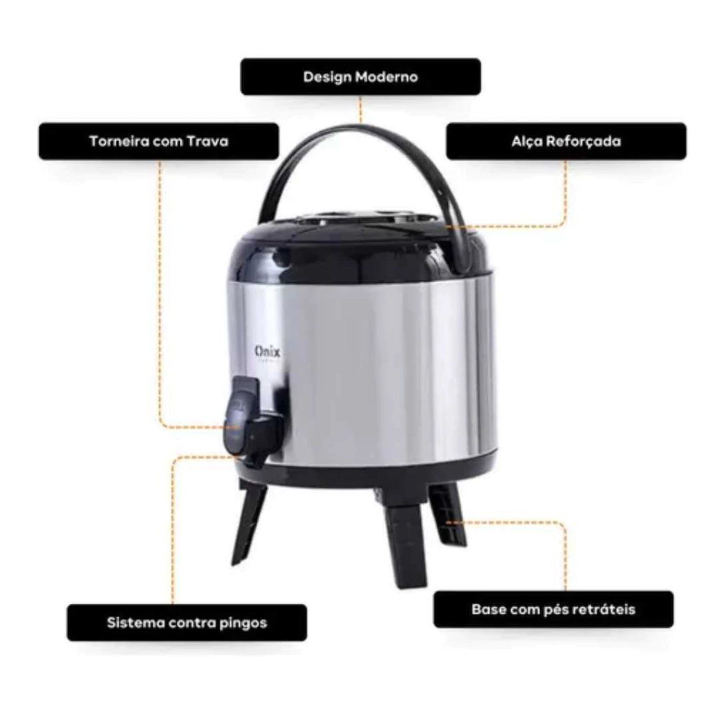 O Botijão Inox 5,5L Paramount é um produto versátil e durável, ideal para quem busca praticidade e qualidade. Confeccionado em aço inoxidável de alta qualidade, ele mantém suas bebidas quentes por mais tempo, seja café, chá ou chocolate quente, e suas bebidas frias, como água, sucos e refrigerantes, geladinhas por horas.