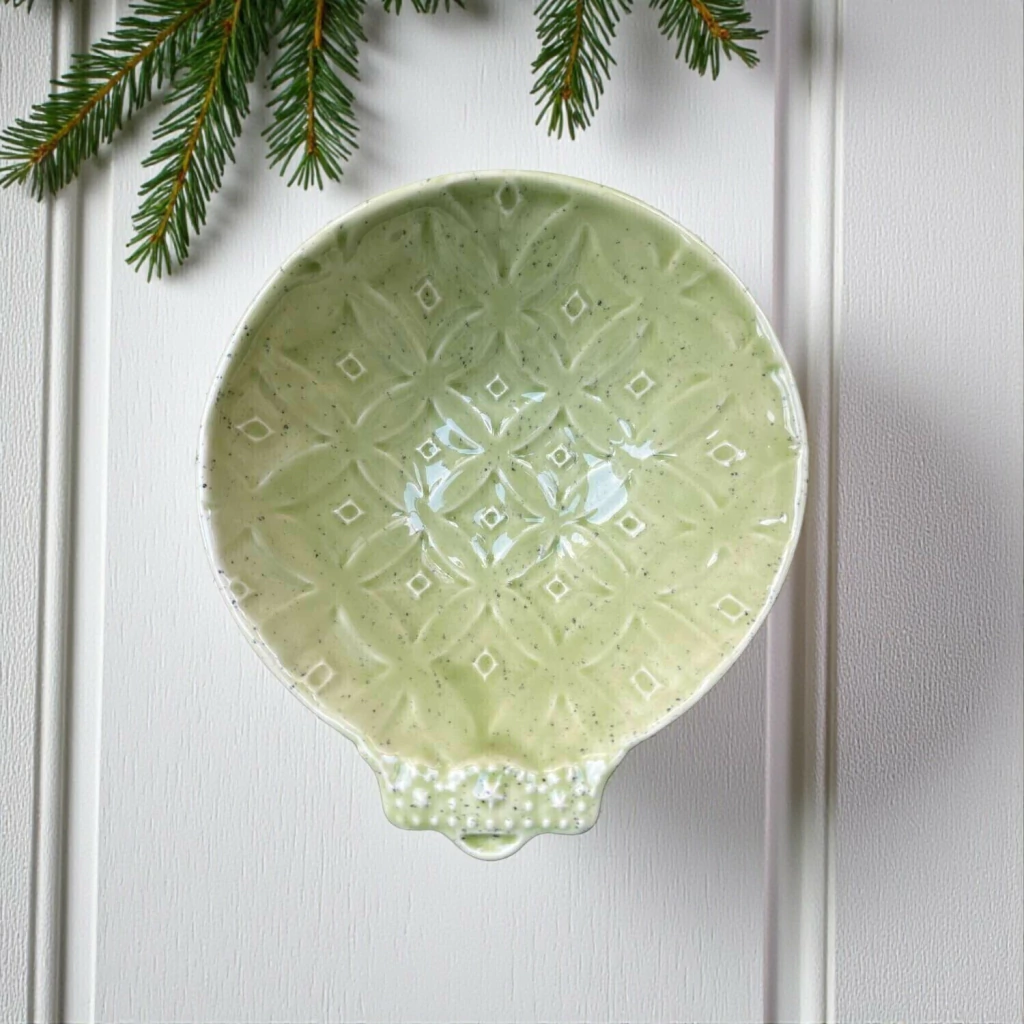 Bowl Christmas Eve Verde Scalla, com relevos delicados de bolas de Natal na superfície.