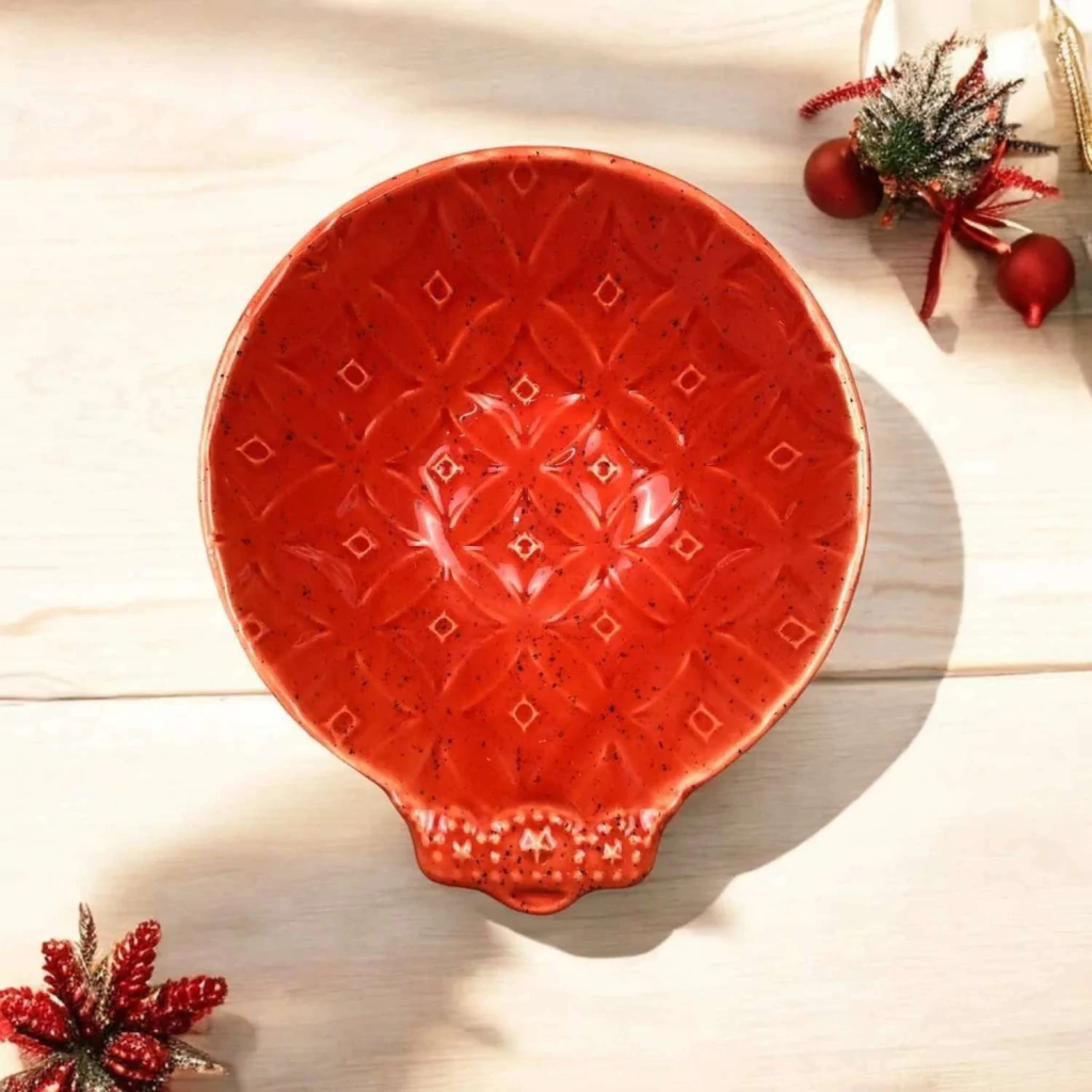 Bowl Christmas Eve Vermelho Scalla, com relevos delicados de bolas de Natal na superfície.