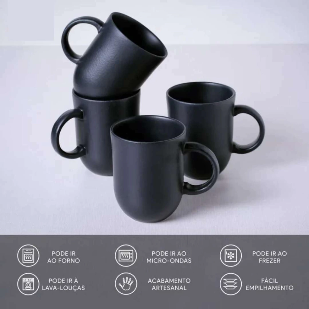KIT 4 CANECAS COUP STONEWARE GRANDE PRETO MATTE 2° CLASSIFICAÇÃO PORTO BRASIL
