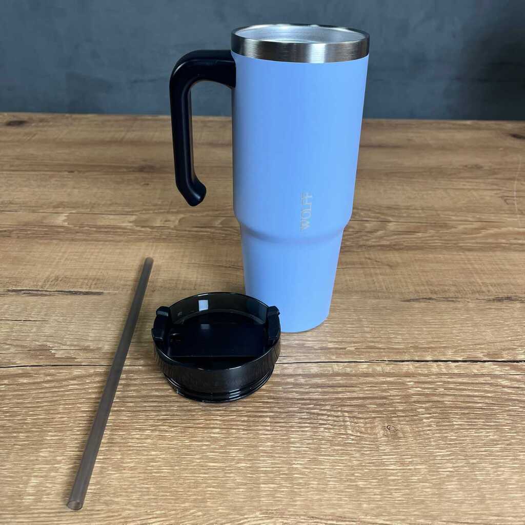 CANECA TÉRMICA PAREDE DUPLA SLIMTERM COM BASE ERGONÔMICA E CANUDO AZUL 890ML WOLFF