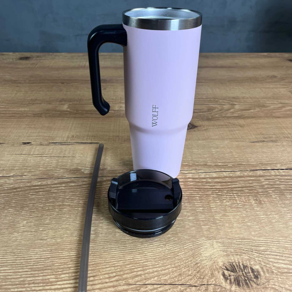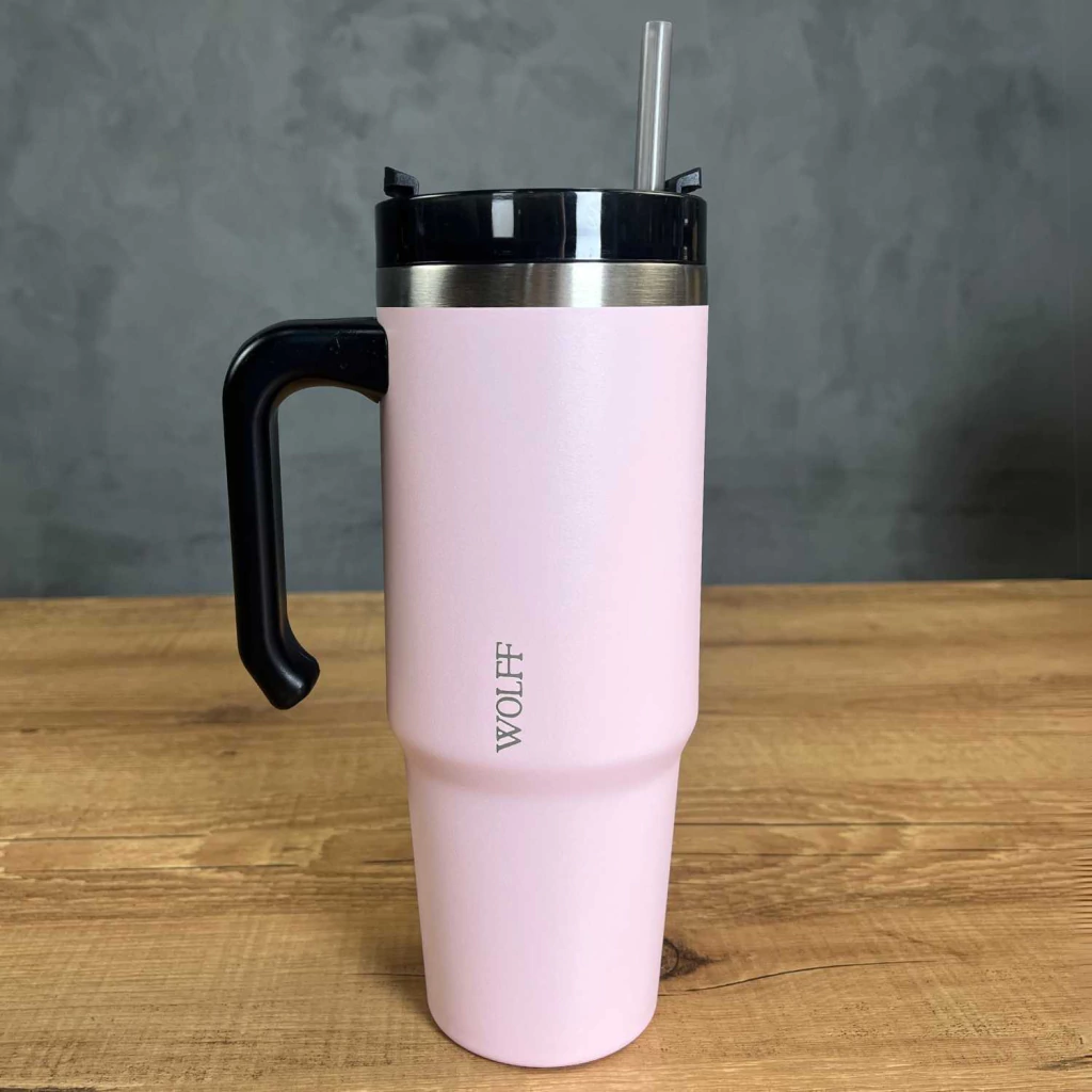 CANECA TÉRMICA PAREDE DUPLA SLIMTERM COM BASE ERGONÔMICA E CANUDO ROSA 890ML WOLFF
