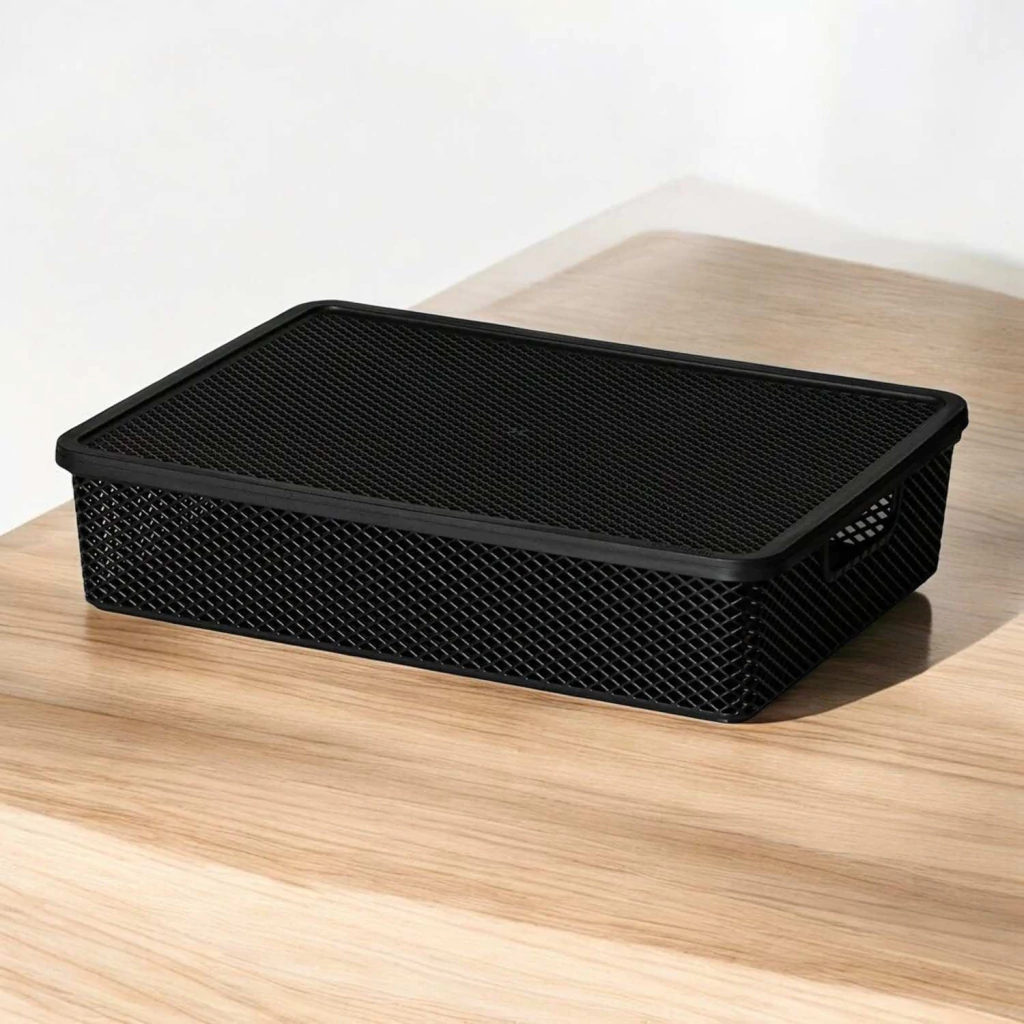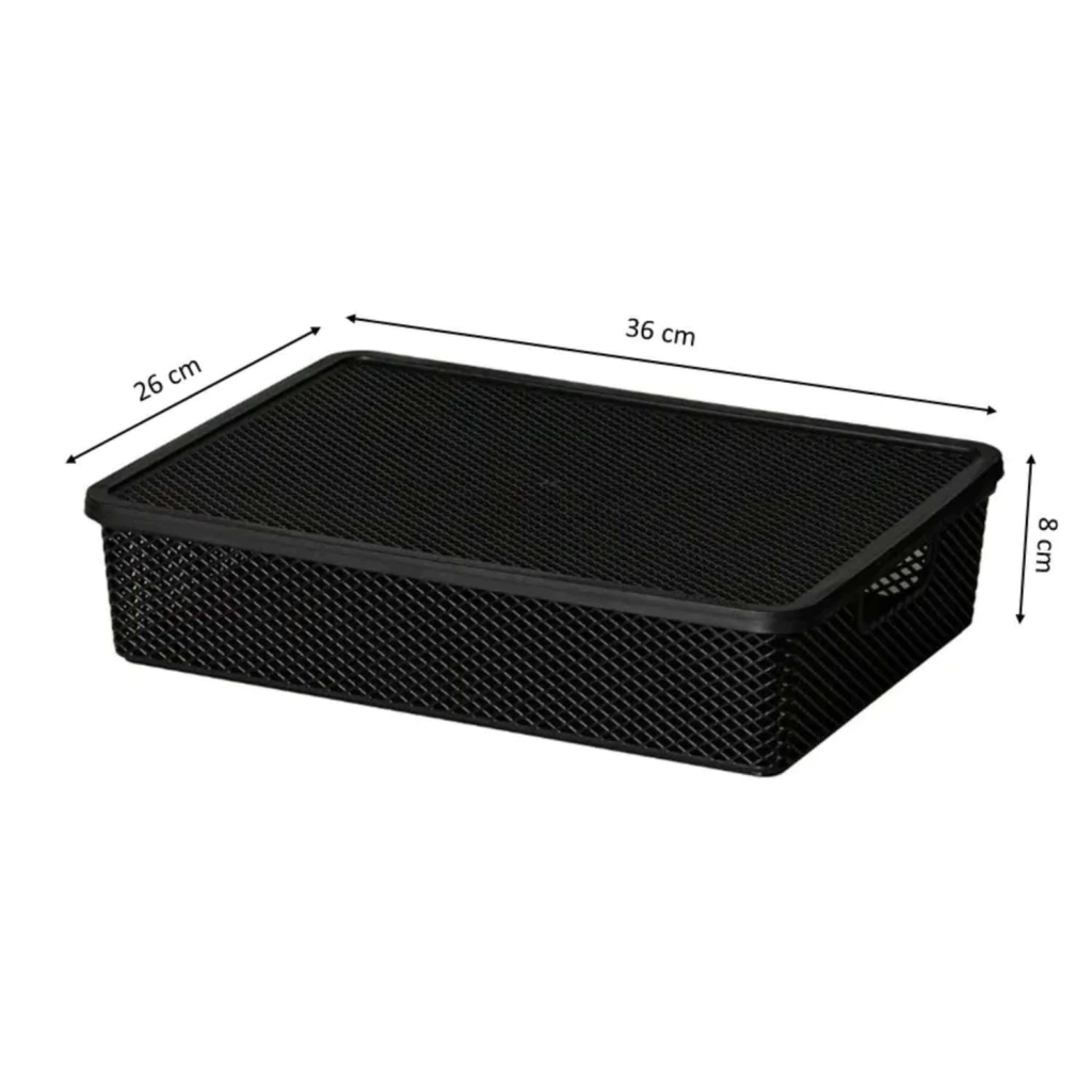 CESTO ORGANIZADOR COM TAMPA PRETO 36X26X8 CM