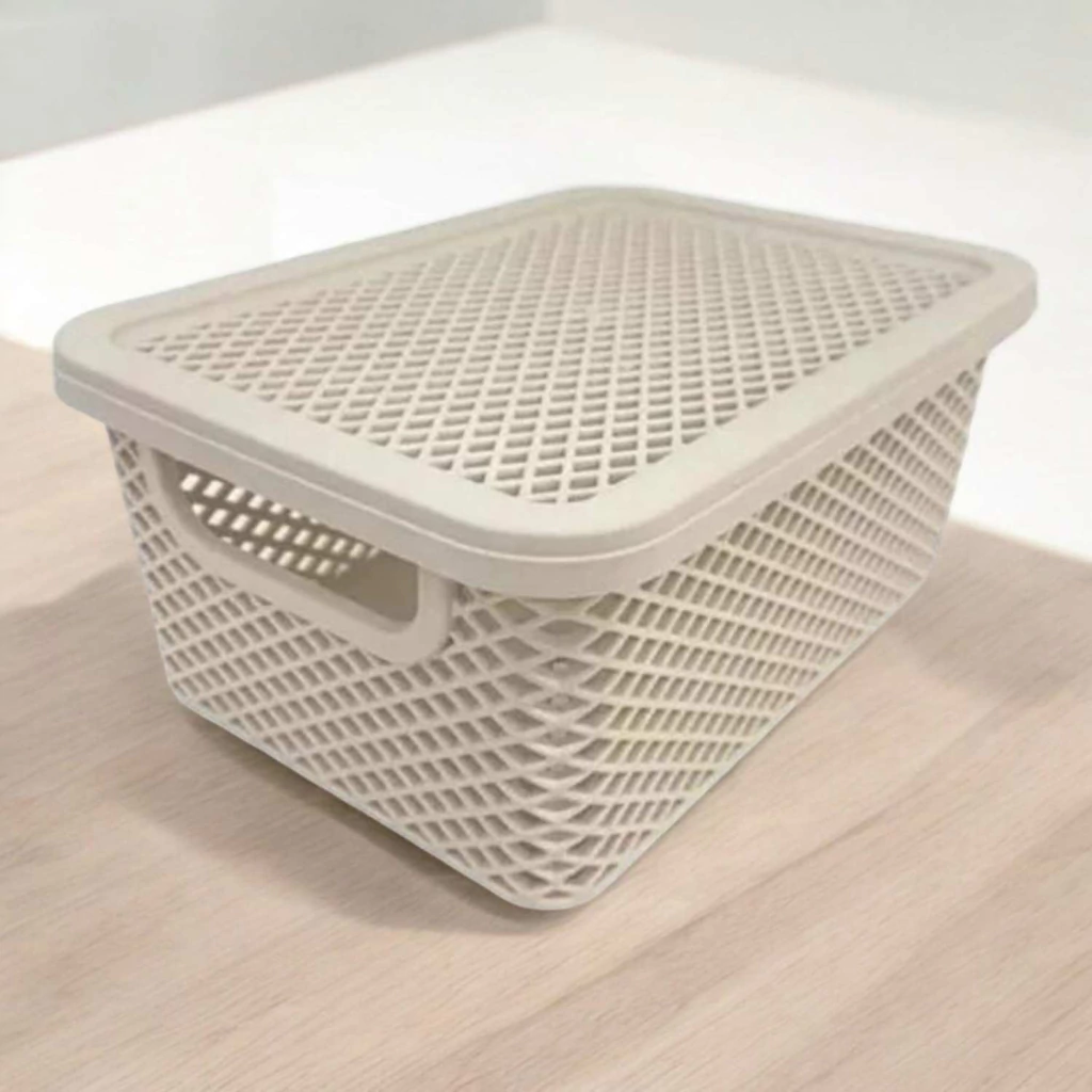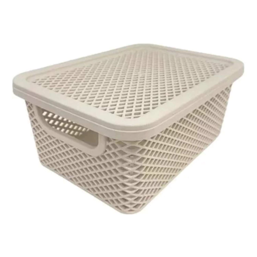 CESTO ORGANIZADOR COM TAMPA CREME 18X13X8 CM