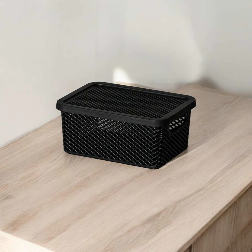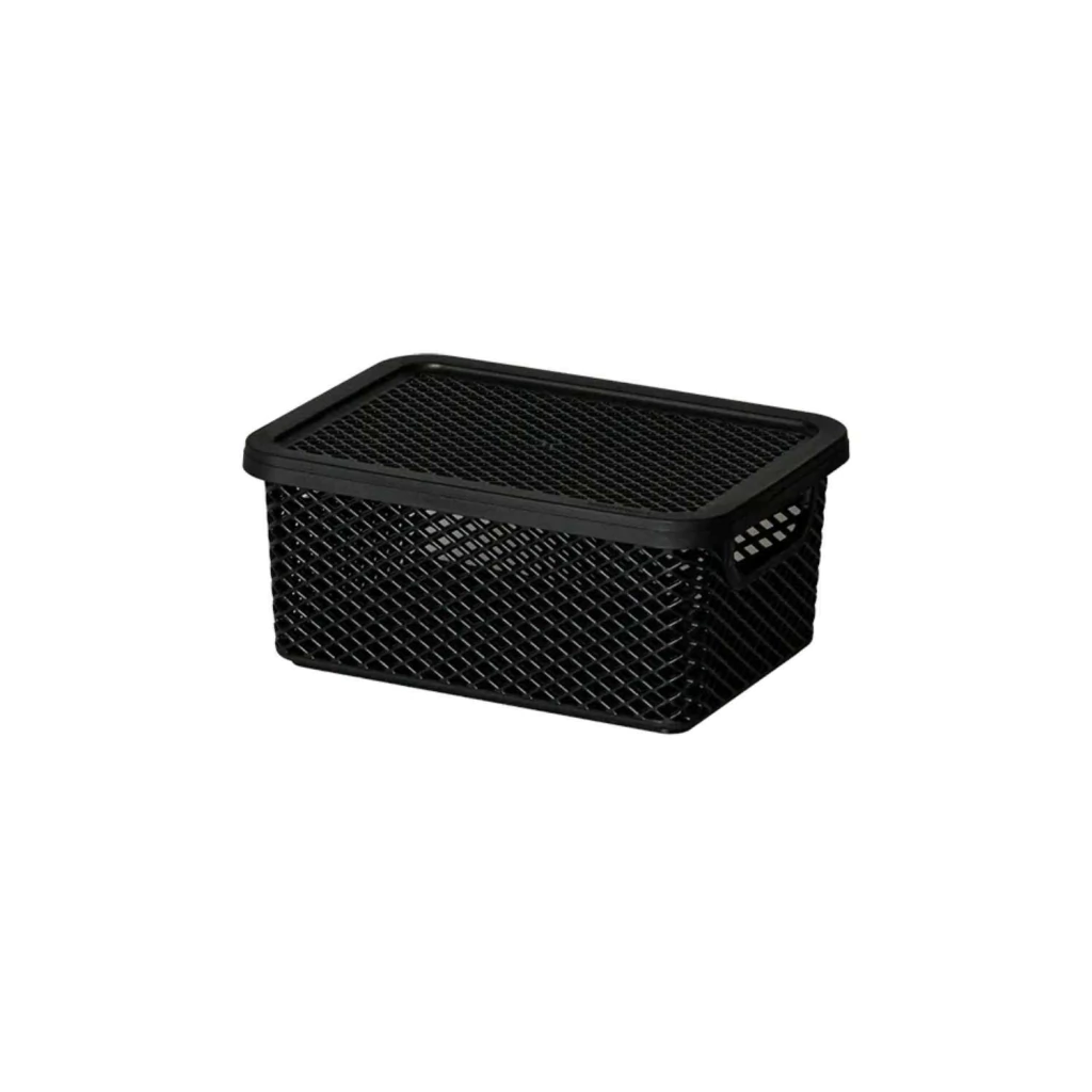 CESTO ORGANIZADOR COM TAMPA PRETO 18X13X8 CM