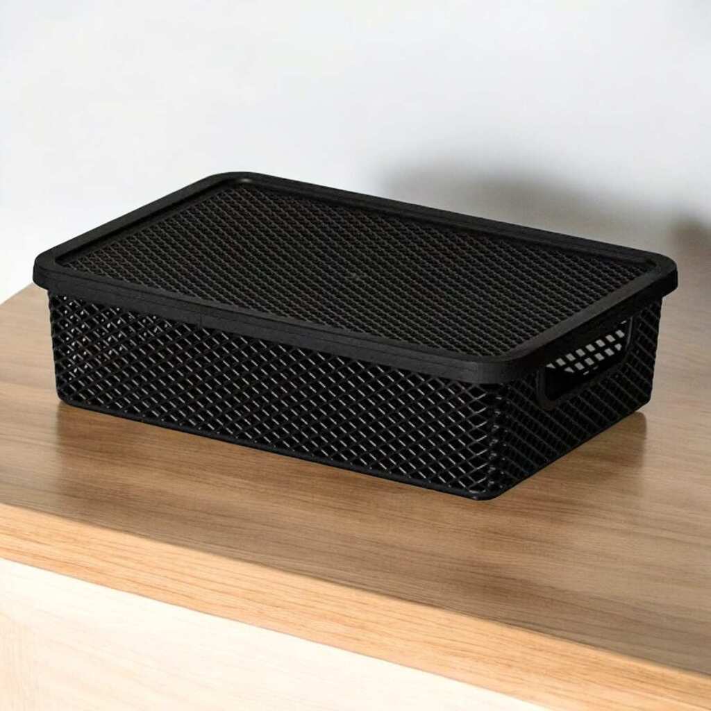CESTO ORGANIZADOR COM TAMPA PRETO 27X19,5X7 CM