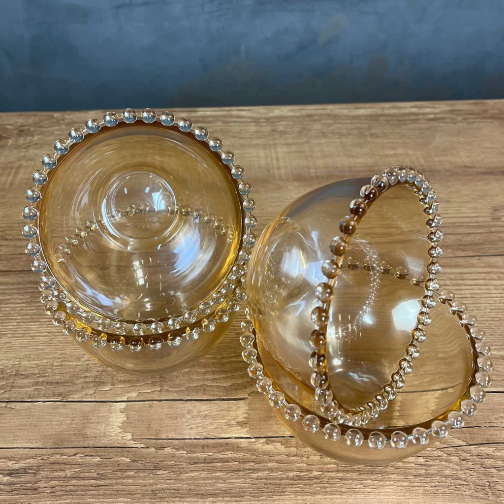 O acabamento âmbar metalizado traz um brilho sofisticado que eleva qualquer decoração ou composição de mesa.
