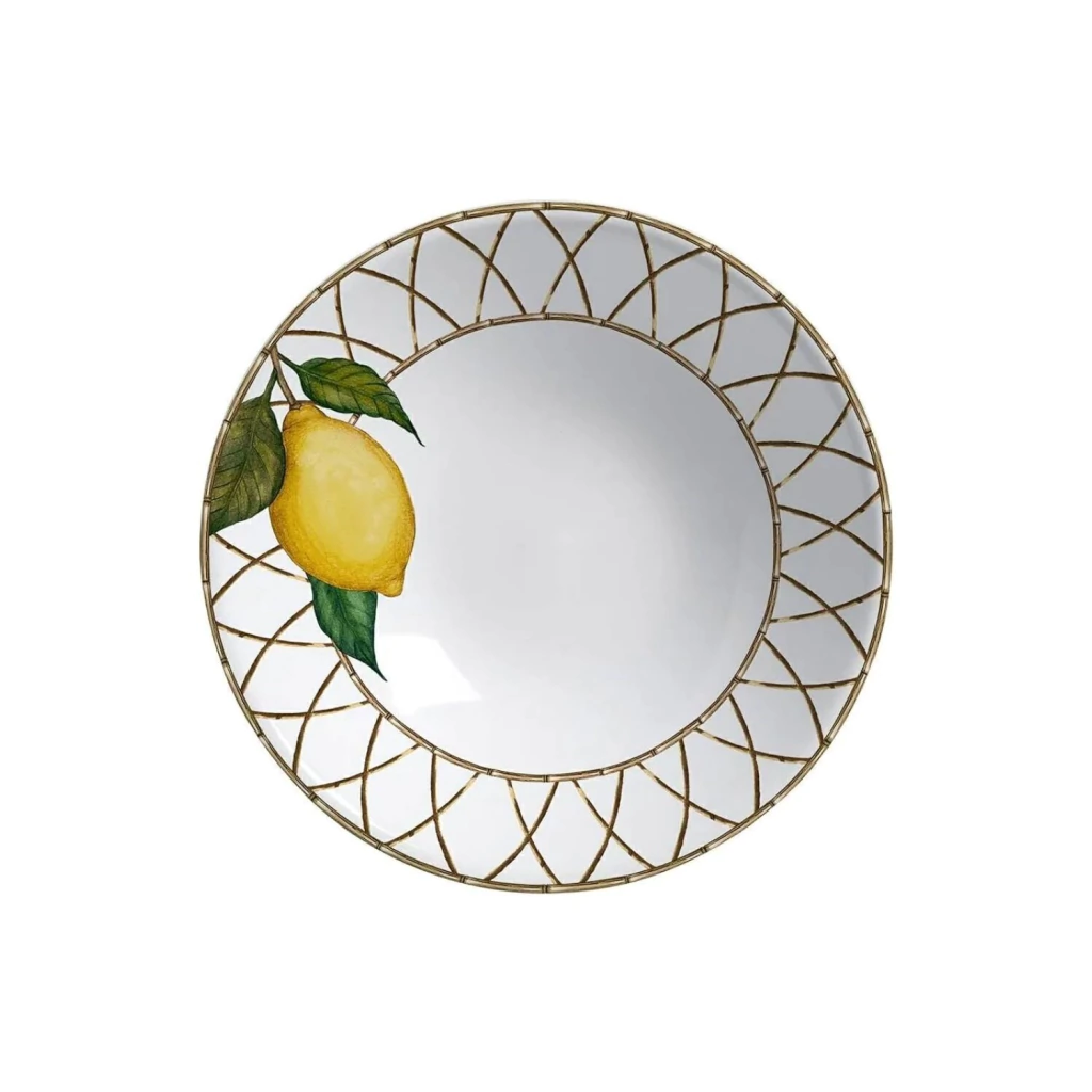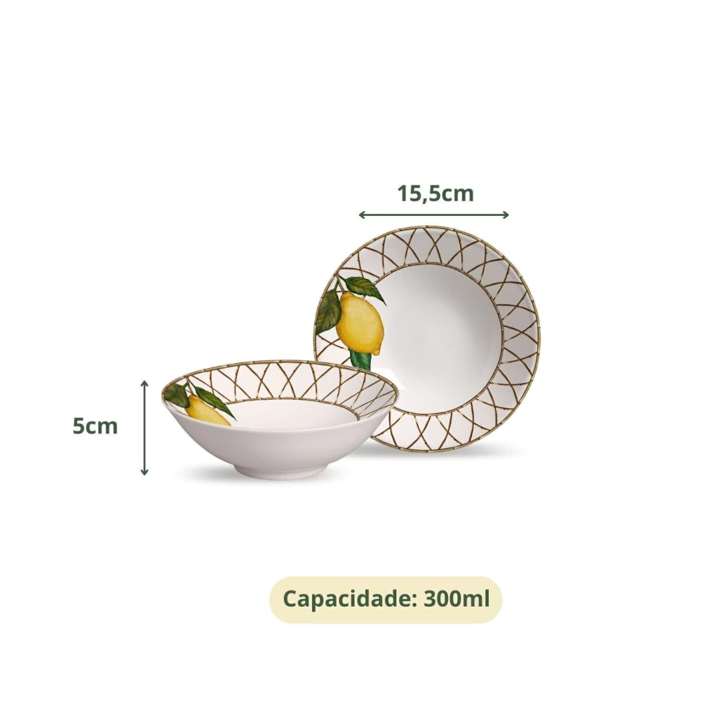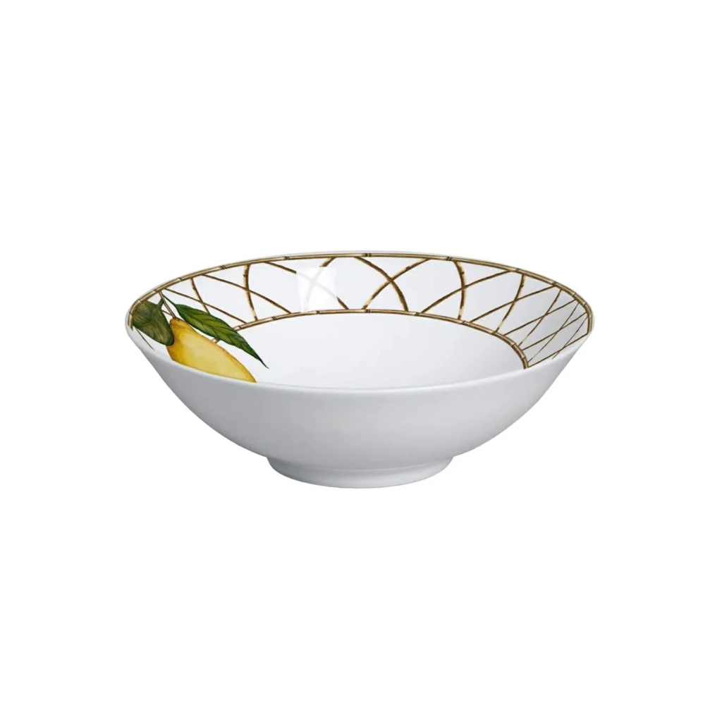 Bowl em cerâmica de alta qualidade com estampa Siciliano, trazendo o frescor dos tons amarelos e detalhes inspirados no limão siciliano. Seu acabamento impecável valoriza a mesa posta com um toque vibrante e elegante. Ideal para servir saladas, frutas, porções individuais e compor mesas temáticas com charme mediterrâneo.