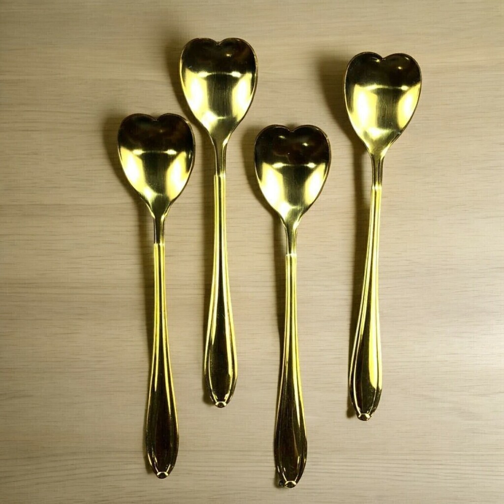 4 Colheres de Chá Wolff Heart Dourado de Aço Inox