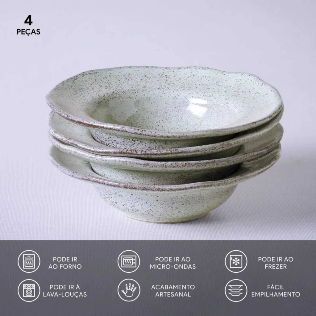 CONJUNTO 4 PRATOS ENTRADA/SOBREMESA ORGÂNICO PISTACHE Ø19X5,5CM 2ª CLASSIFICAÇÃO PORTO BRASIL