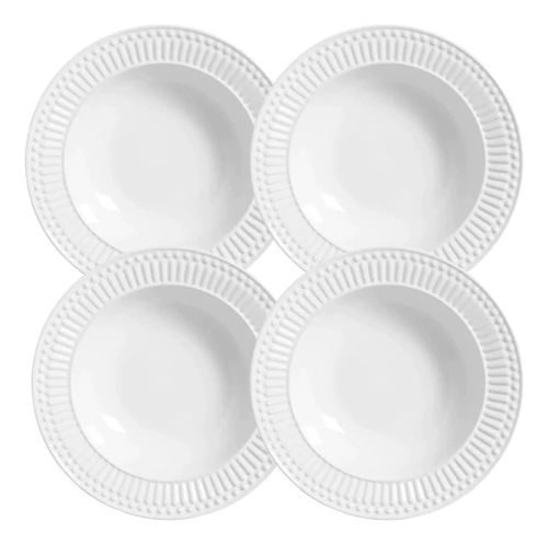 O prato fundo da linha Ravenna da Porto Brasil apresenta um design atemporal em branco, perfeito para adicionar um toque de elegância à sua mesa.