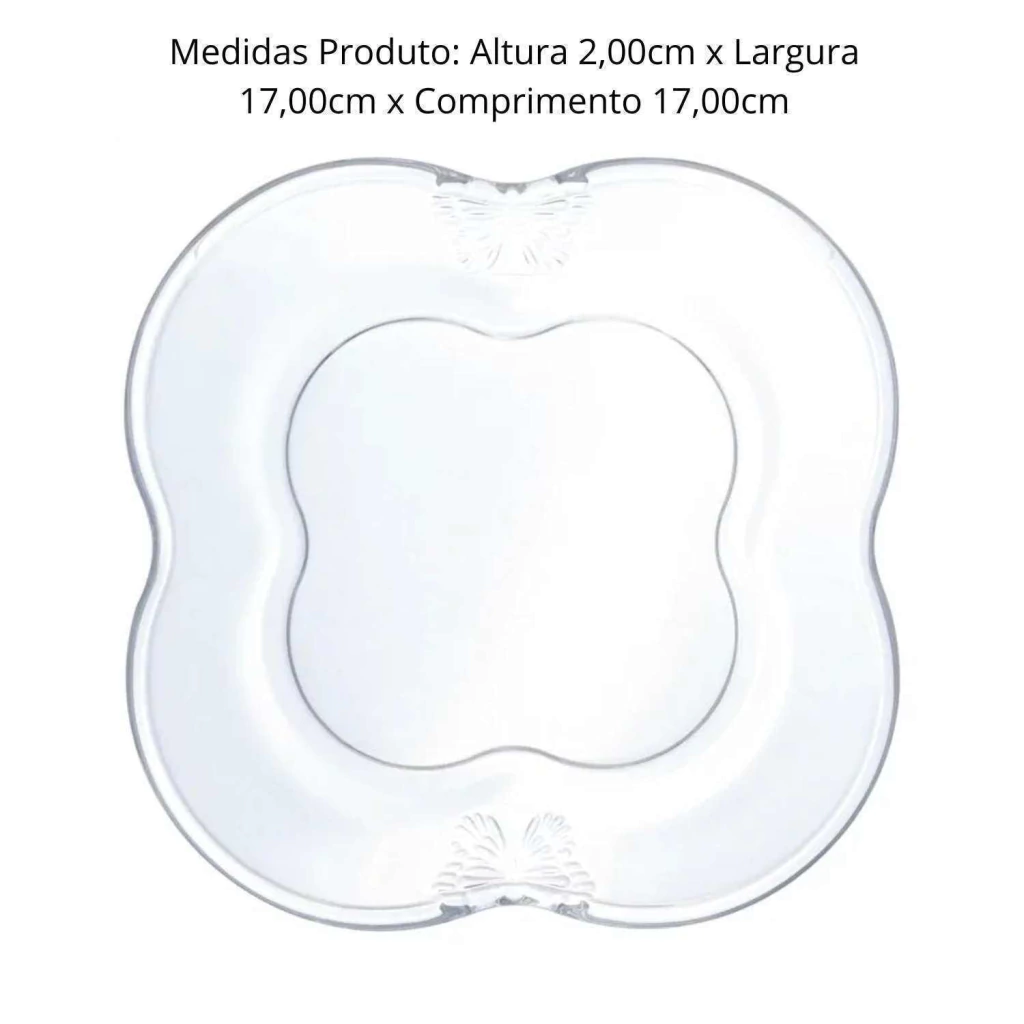 CONJUNTO 4 PRATOS PARA SOBREMESA DE VIDRO BUTTERFLY 17CM WOLFF