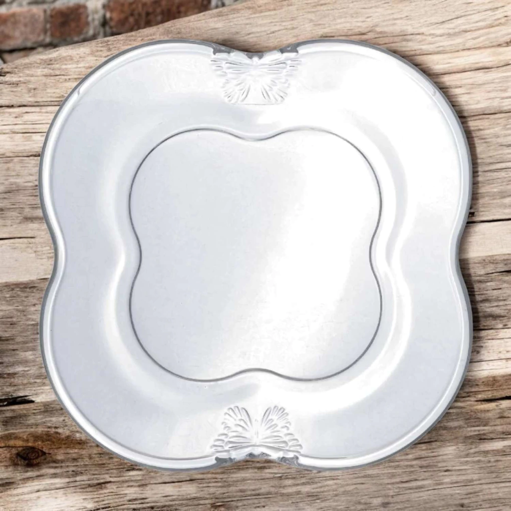 Os pratos de sobremesa de vidro Butterfly da Wolff apresentam um design encantador com detalhes de borboleta, proporcionando um toque delicado à mesa.