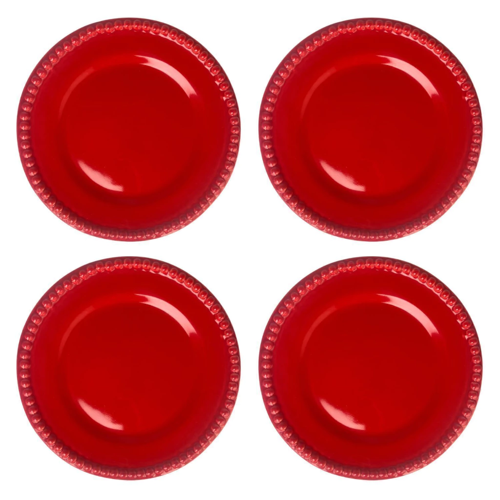 CONJUNTO 4 PRATOS RASOS BOLINHA VERMELHA HOME DECOR