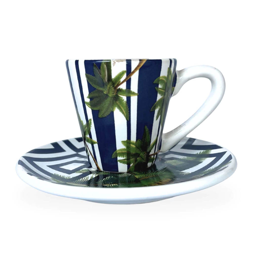 A Xícara de Café com Pires Coqueiro Scalla traz charme tropical e delicadeza para a mesa posta, combinando o estilo marcante da marca Scalla com a suavidade de um design inspirado na natureza. Produzida em cerâmica de alta qualidade, a peça apresenta estampa de coqueiro em tons naturais, criando um visual leve, elegante e acolhedor.