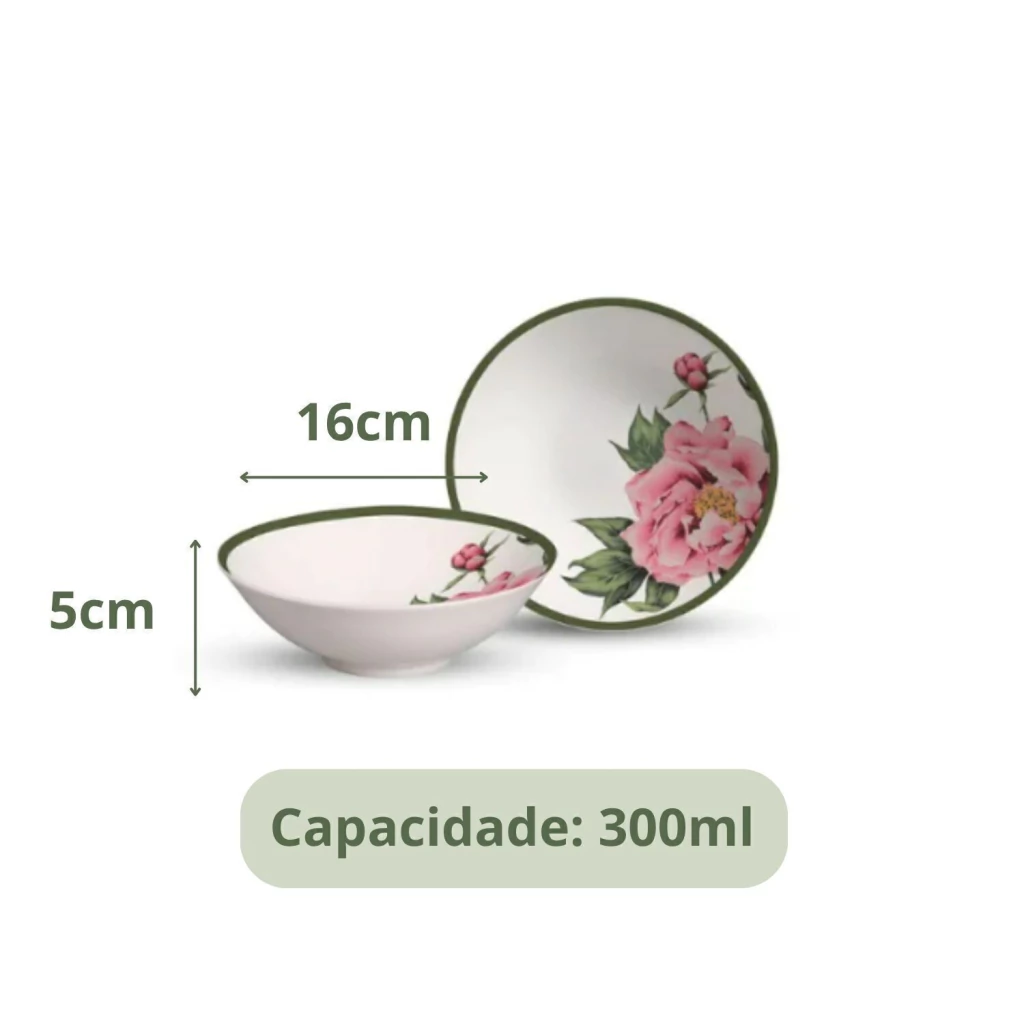 KIT 6 BOWLS DECORADOS PEONY ROSE ACETINADO FOSCO 1ª CLASSIFICAÇÃO ALLEANZA