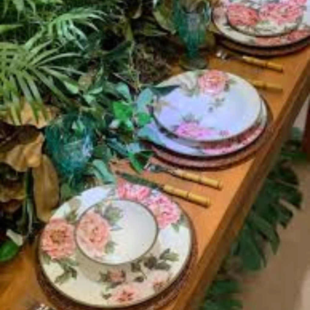 Apresenta uma estampa delicada de peônia, criando um visual elegante e floral. Acrescenta um toque de charme e sofisticação na cozinha ou na mesa de jantar.