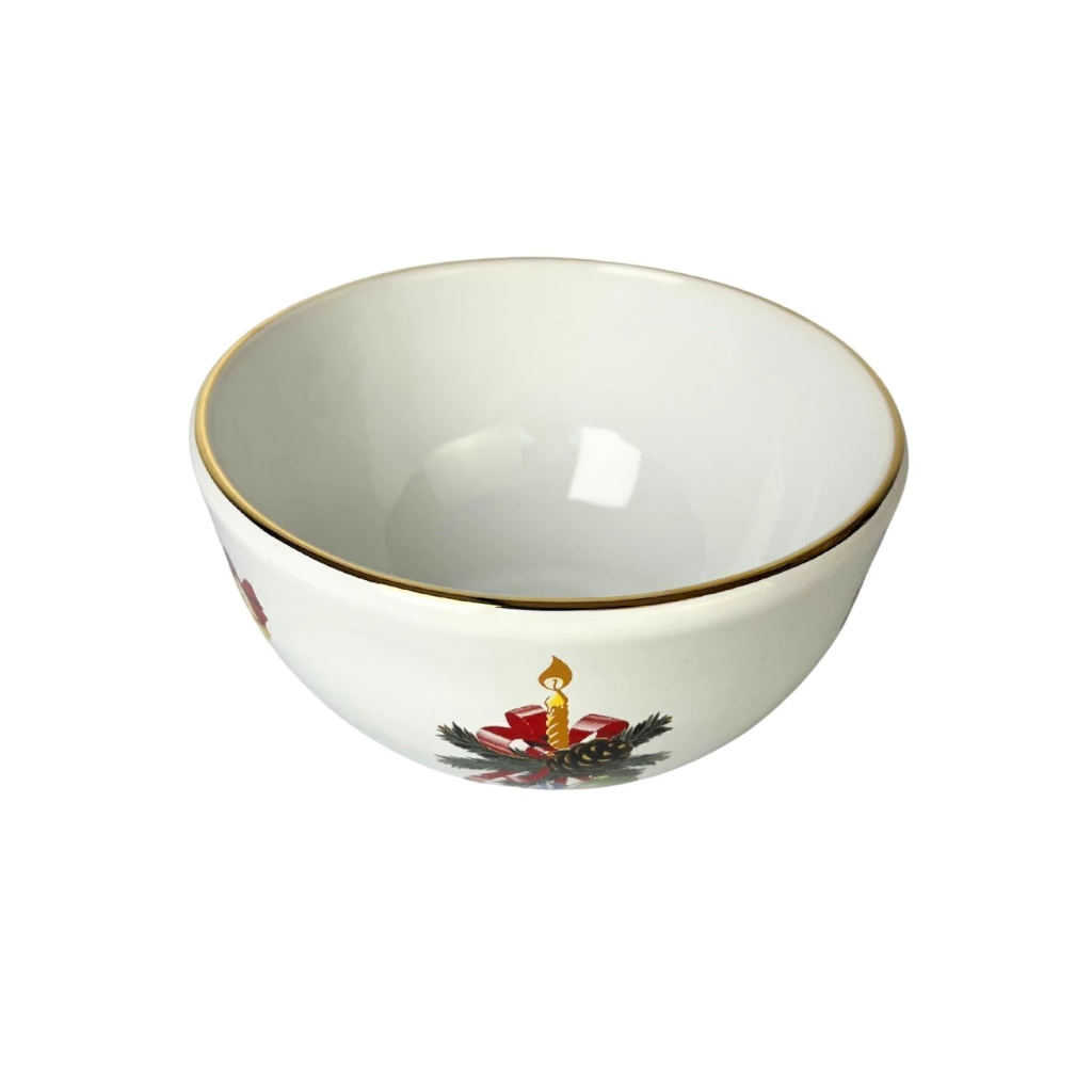 Elegante bowl natalino com design clássico, trazendo símbolos tradicionais em tons festivos que enriquecem a composição da mesa. Acabamento delicado que valoriza cada detalhe e harmoniza com diferentes louças temáticas. Ideal para servir aperitivos, sobremesas ou compor a decoração de Natal com charme e personalidade.