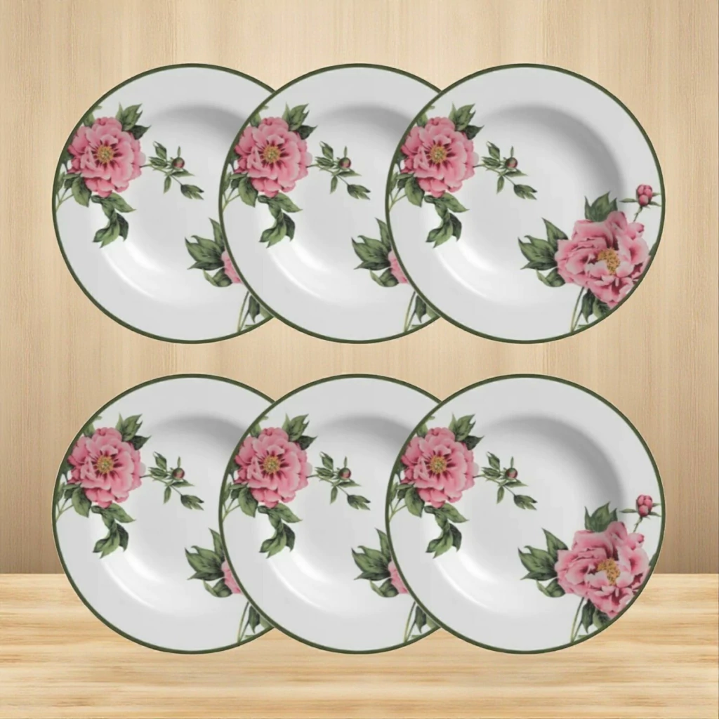 CONJUNTO 6 PRATOS FUNDOS PEONY ROSE ACETINADO FOSCO 1ª CLASSIFICAÇÃO ALLEANZA