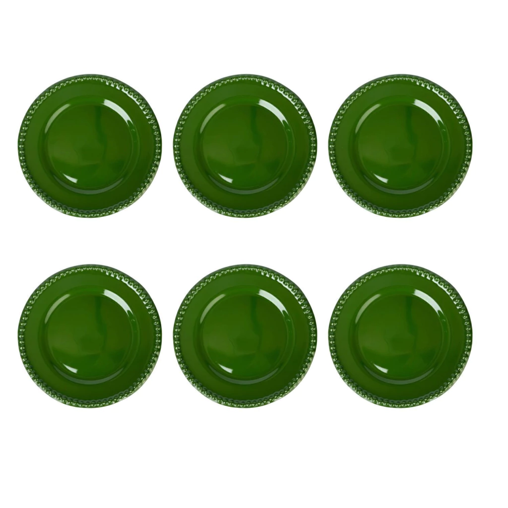 CONJUNTO 6 PRATOS RASOS BOLINHA FLORESTA VERDE ESCURO HOME DECOR
