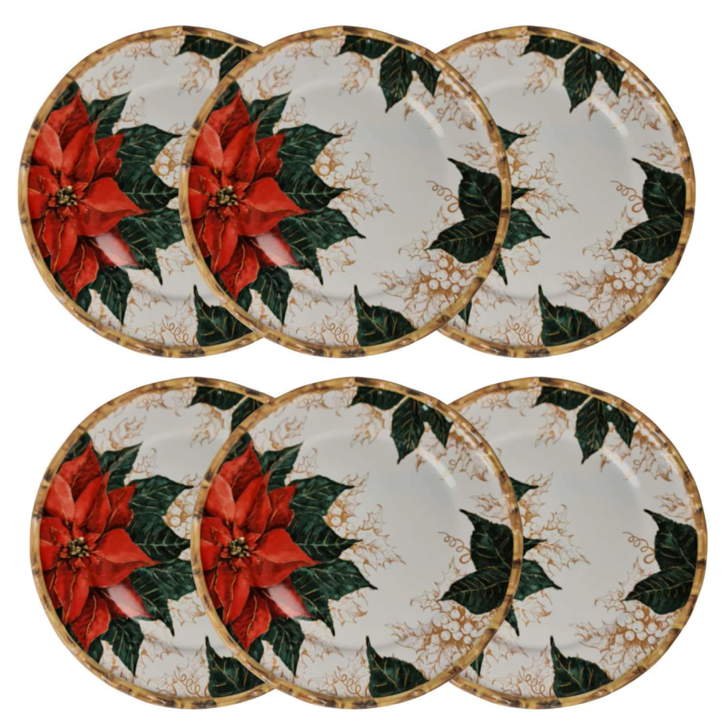 CONJUNTO 6 PRATOS RASO CHRISTMAS FLOWERS MAISON BLANCHE
