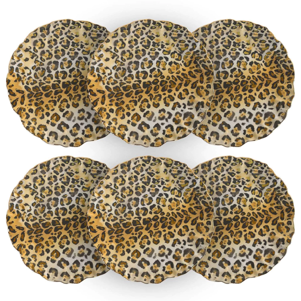 Leve sofisticação e ousadia à sua mesa posta com o Prato Raso Jaguar Dore Scalla. Com estampa animal print em tons de dourado e preto, ele destaca um visual moderno e elegante, perfeito para composições cheias de personalidade.