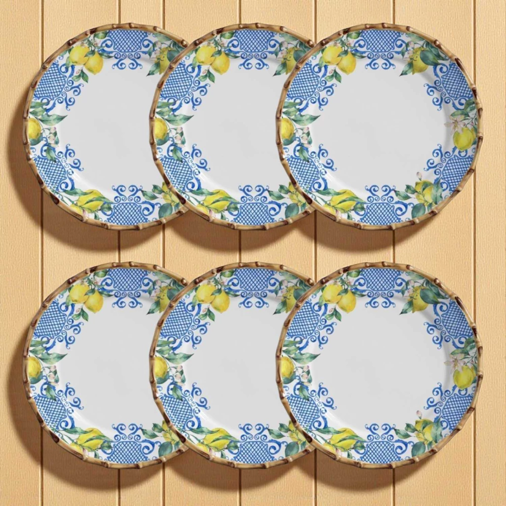 CONJUNTO 6 PRATOS RASOS LIMONCELLO FUNDO BRANCO MAISON B