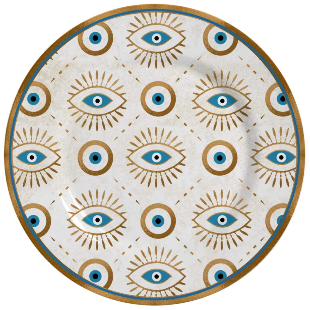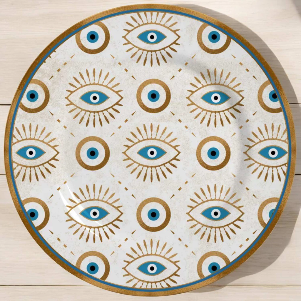 Apresenta um estilo charmoso e diferenciado, ideal para servir pratos principais de forma única e especial. O prato raso da linha Olho Grego tem um design temático e intrigante, com detalhes que remetem à cultura grega.