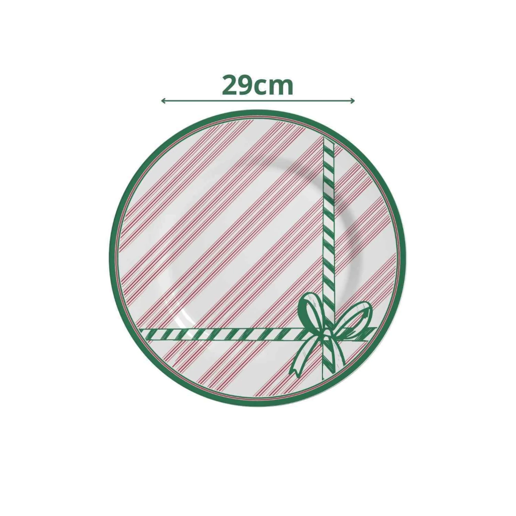 Com estampa natalina sutil em rosa e verde sobre fundo branco, o prato traz aquele clima festivo de maneira elegante e leve.