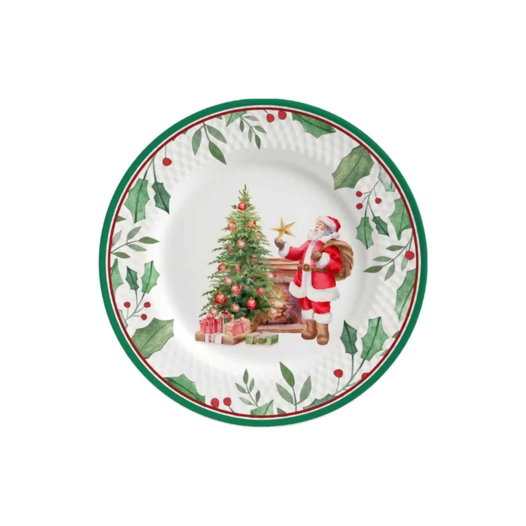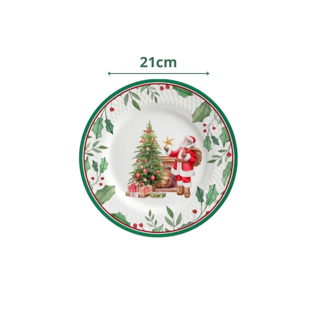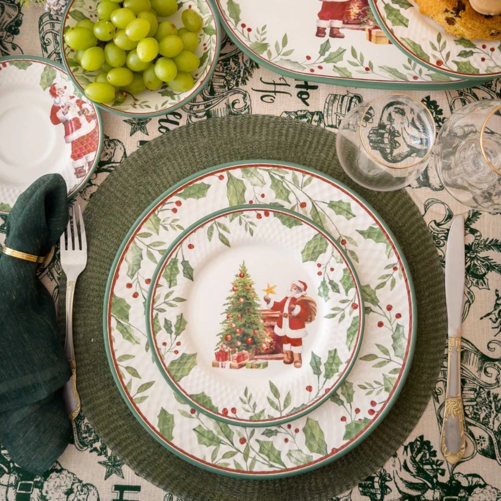 Com estampa de azevinhos natalinos sobre fundo branco e acabamento delicado, o prato de sobremesa Azevinho encanta com elegância.