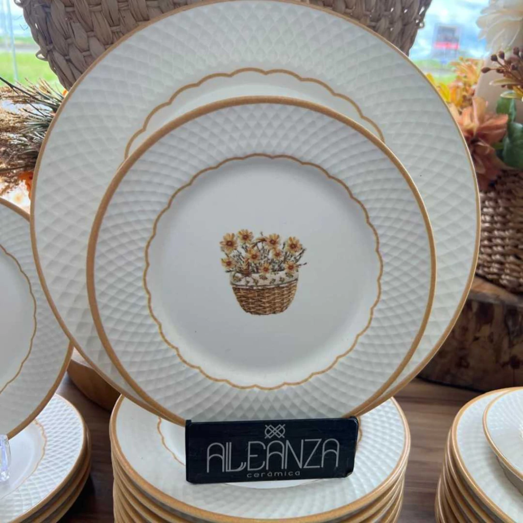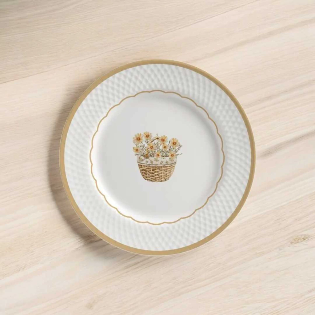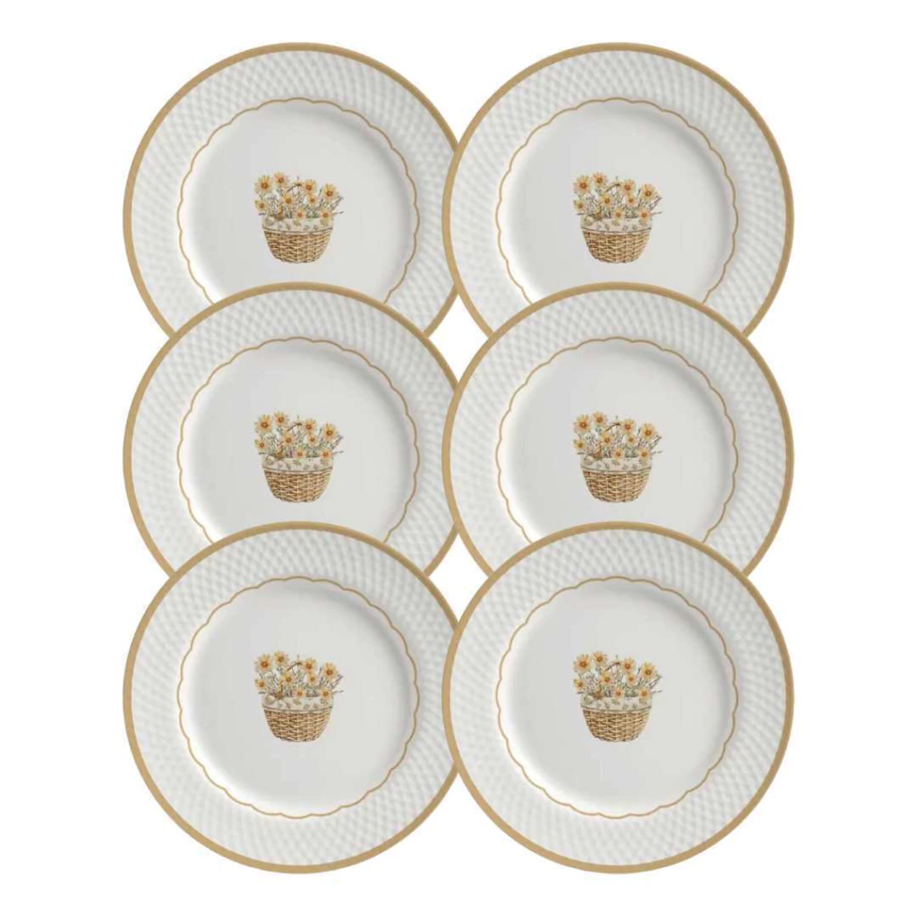 CONJUNTO 6 PRATOS SOBREMESA HUPPERT ACETINADO (ESTAMPA CESTINHA) 1ª L ALLEANZA