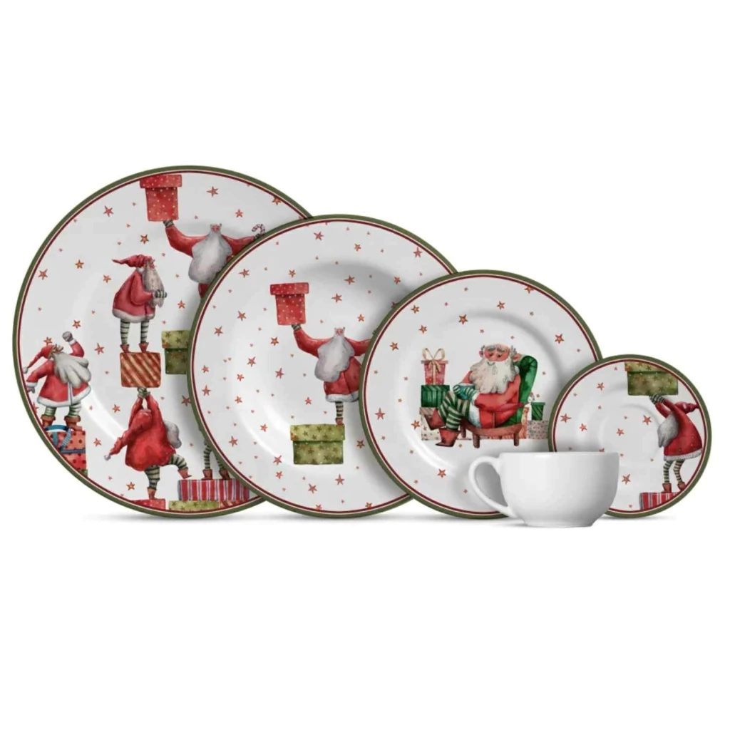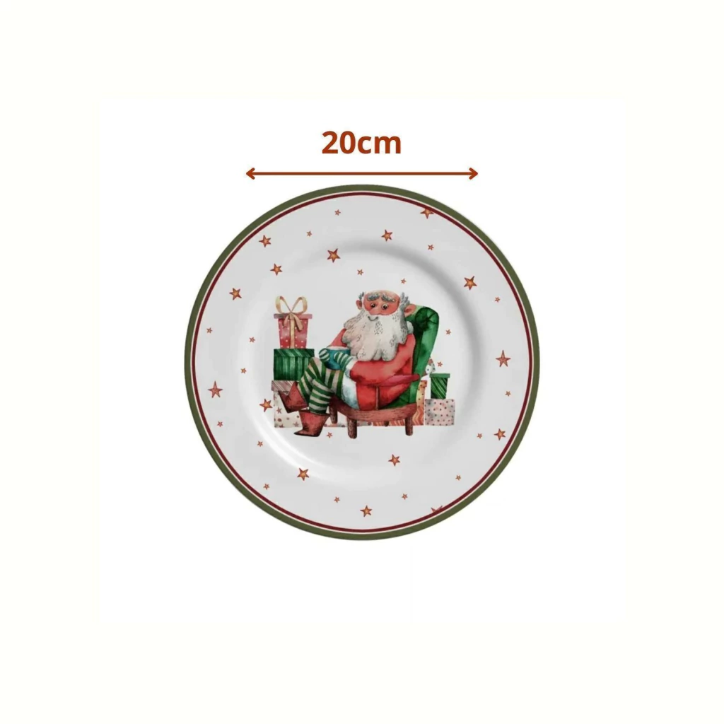 CONJUNTO 6 PRATOS SOBREMESA FATHER CHRISTMAS (ESTAMPA PAPAI NOEL) COLEÇÃO NATAL ALLEANZA