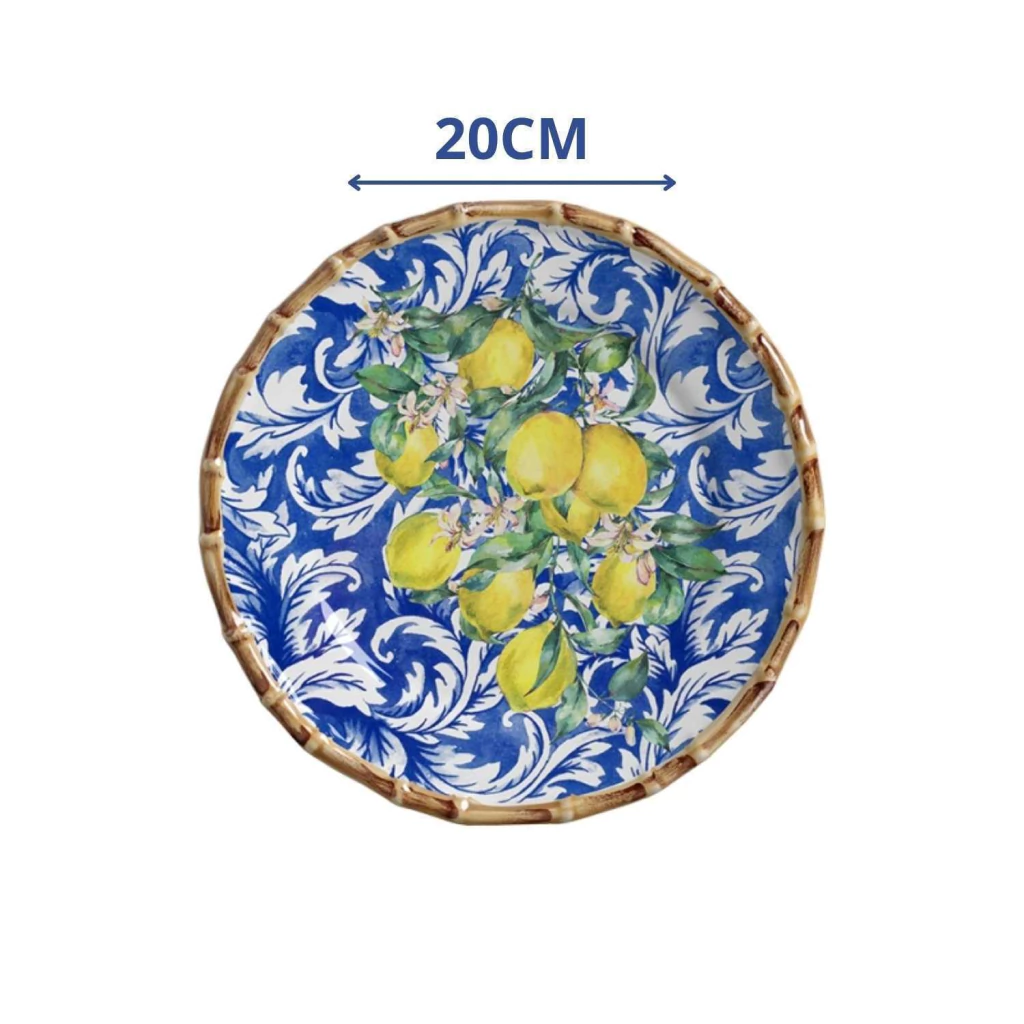 Com estampa de limões, os pratos de sobremesa Limoncello são cheios de personalidade.
