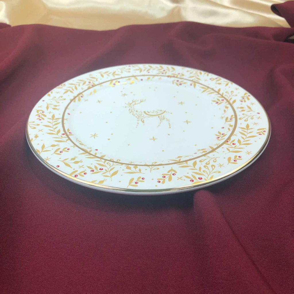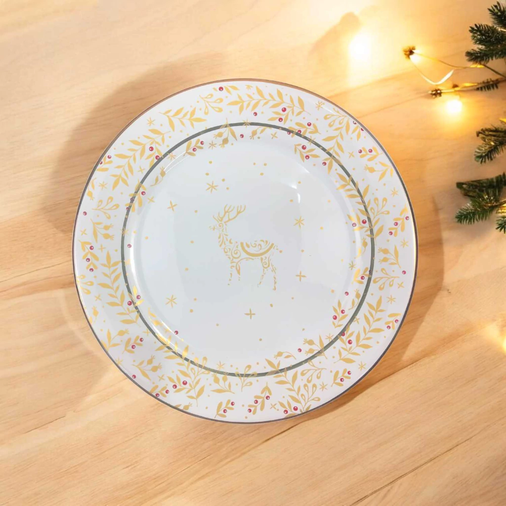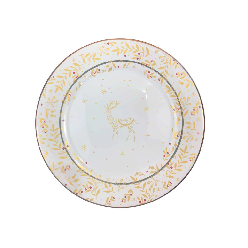 Ideal para servir sobremesas natalinas, como tortas, bolos ou frutas, o prato adiciona um toque de glamour às delícias servidas, valorizando ainda mais o momento de celebração.