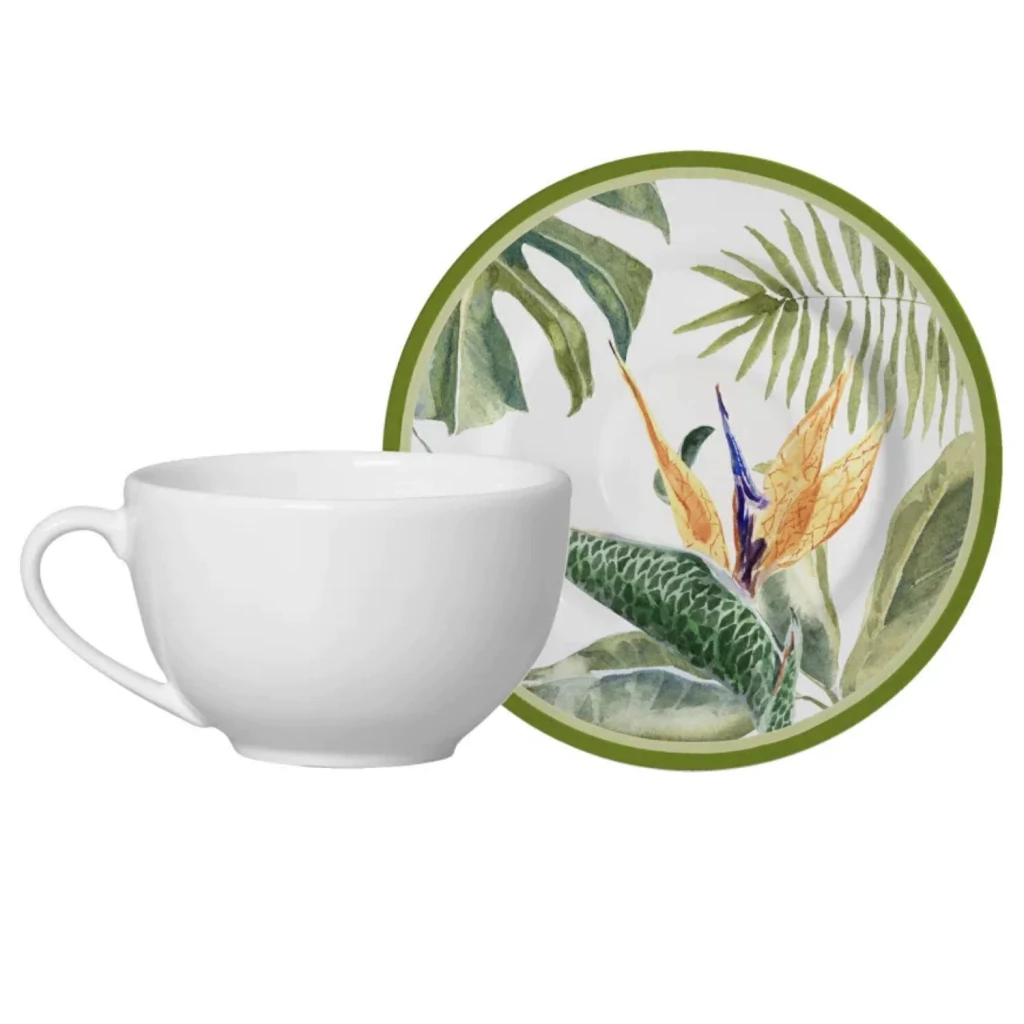 Conjunto de xícaras brancas que ganha charme extra com pires estampados em delicadas flores, trazendo leveza à mesa posta. O contraste entre o branco e o floral cria um visual elegante e acolhedor para qualquer ocasião. Ideal para servir chá com beleza e sofisticação no dia a dia ou em momentos especiais.
