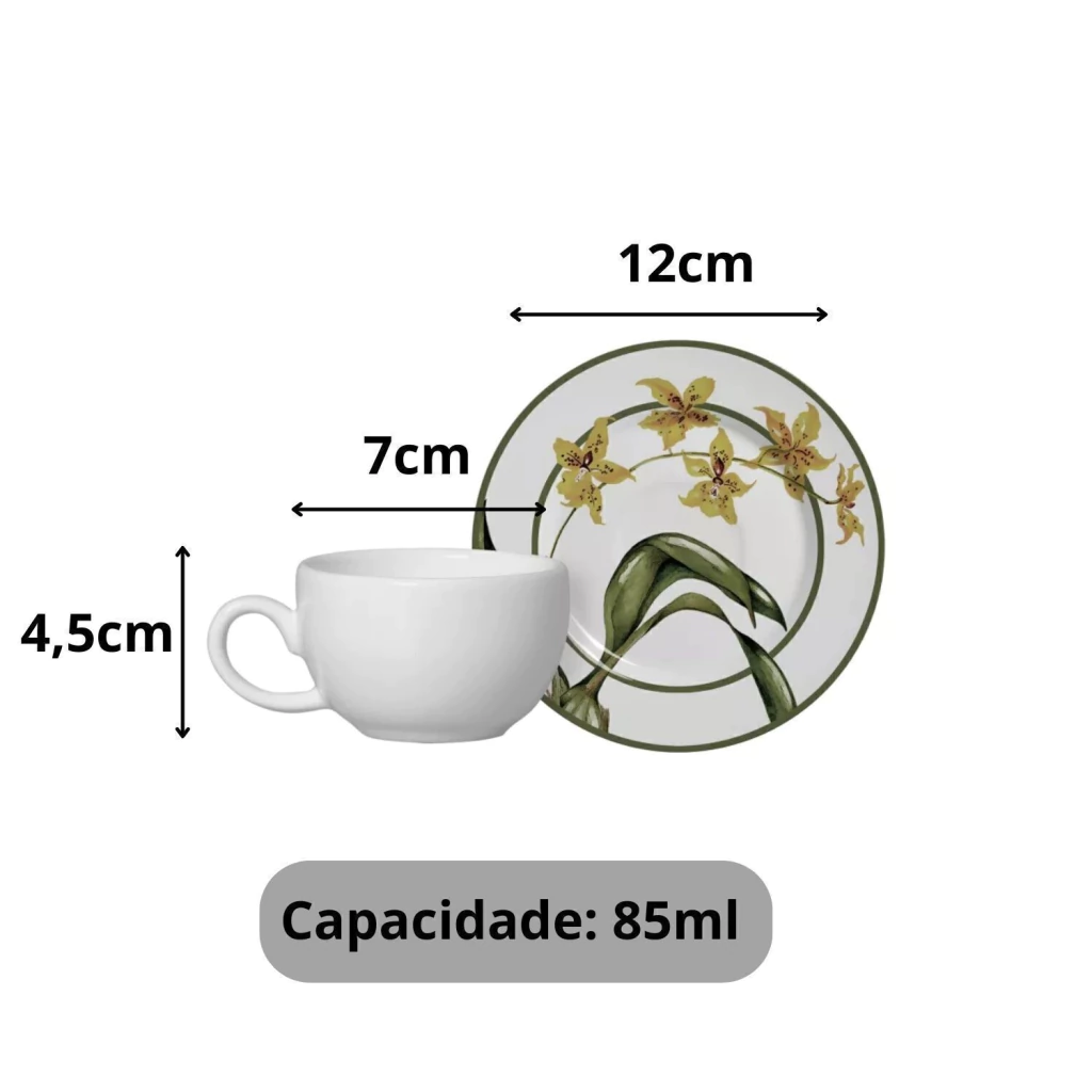CONJUNTO 6 XÍCARAS CAFÉ BRANCA COM PIRES ORQUIDEAS 1ª LINHA ALLEANZA