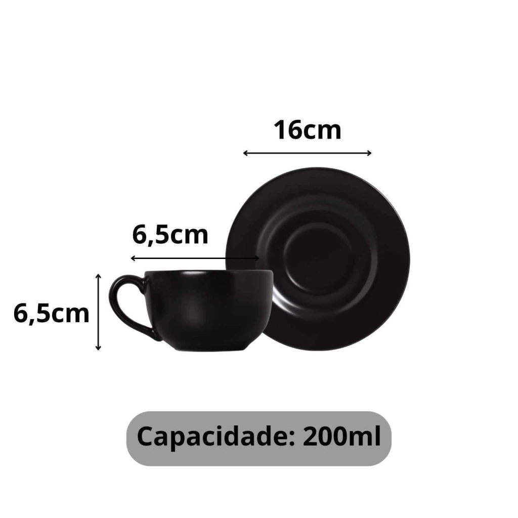 CONJUNTO 6 XÍCARAS CAFÉ COM PIRES PRETO ACETINADO ALLEANZA