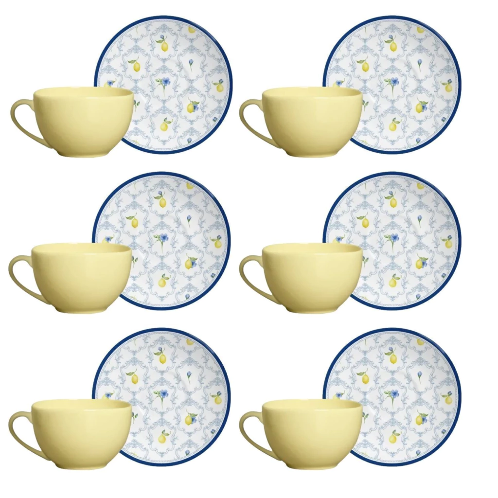 CONJUNTO 6 XÍCRA CHÁ AMARELA COM PIRES COUP SICILIA 1ª LINHA ALLEANZA