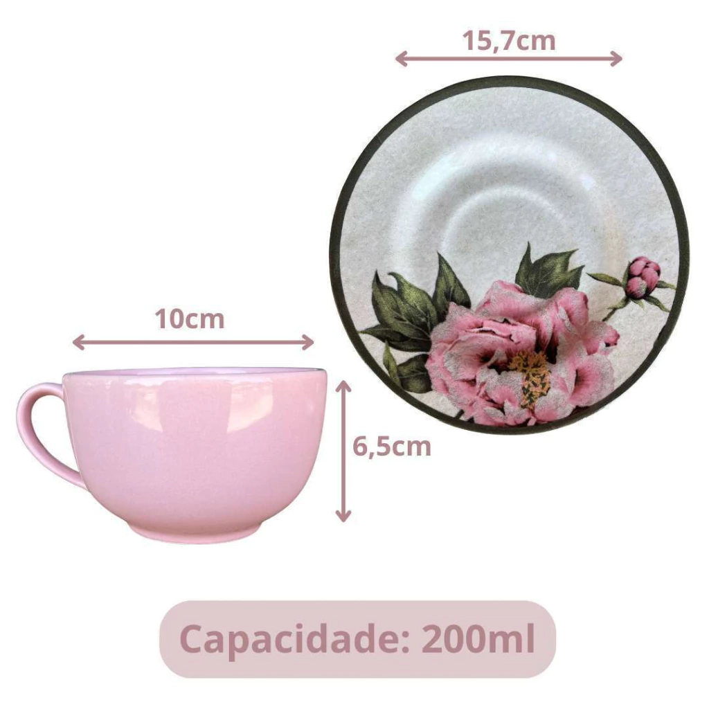 CONJUNTO 6 XÍCARAS CHÁ ROSA COM PIRES PEONIA ALLEANZA
