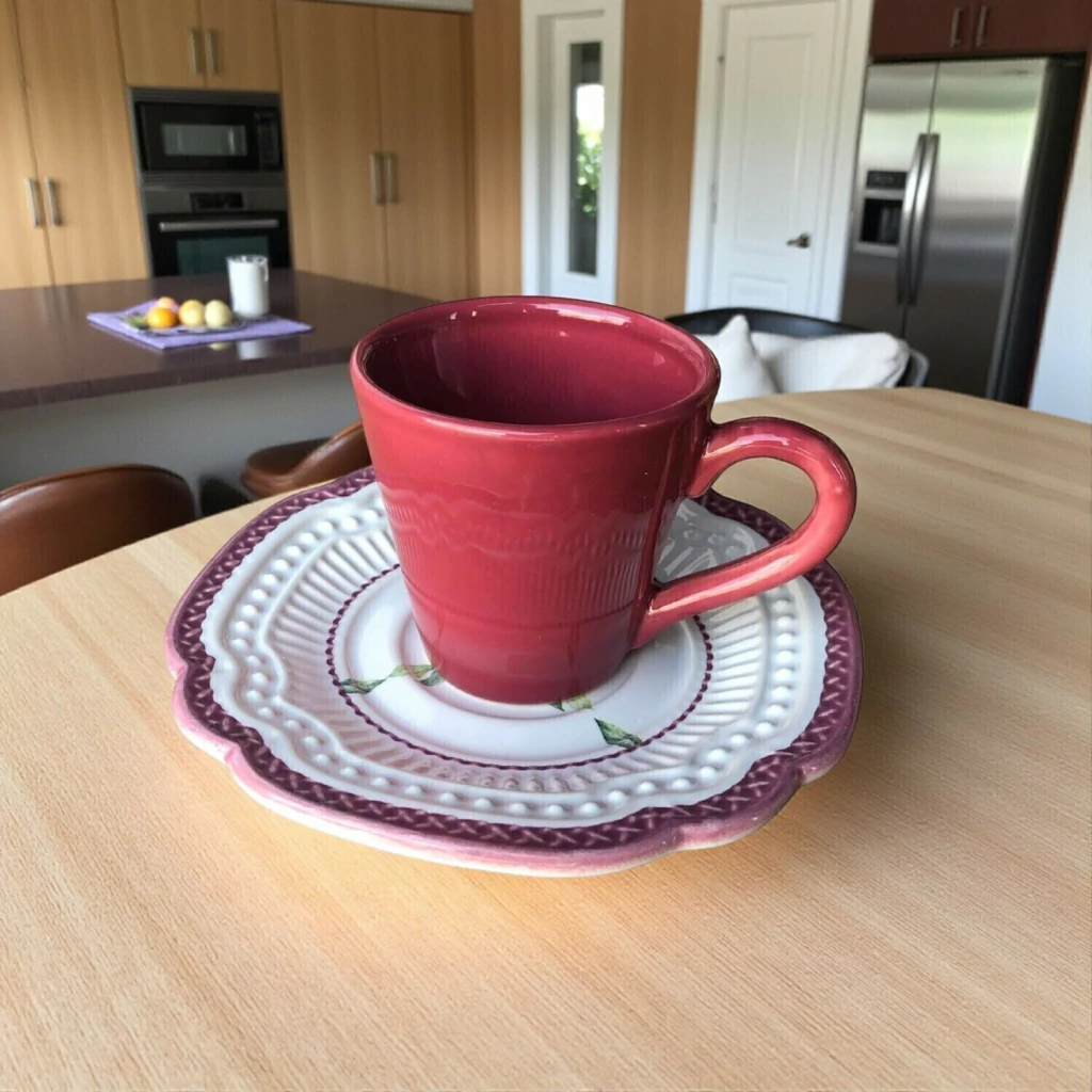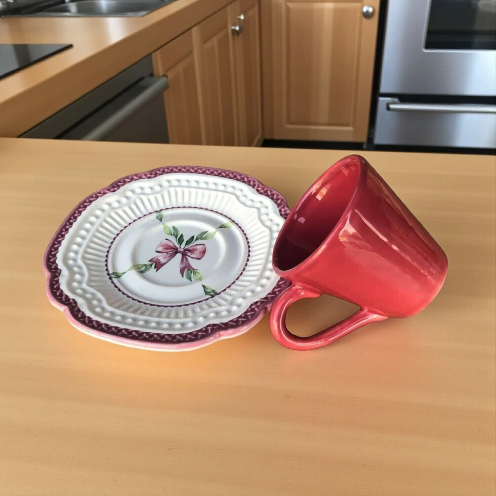 Conjunto de xícara de chá com pires da coleção Natal Laços de Jardim Rosa Scalla. A peça traz delicadeza em sua estampa natalina com laços e flores, perfeita para compor mesas festivas. Um charme especial que une elegância e espírito de celebração.
