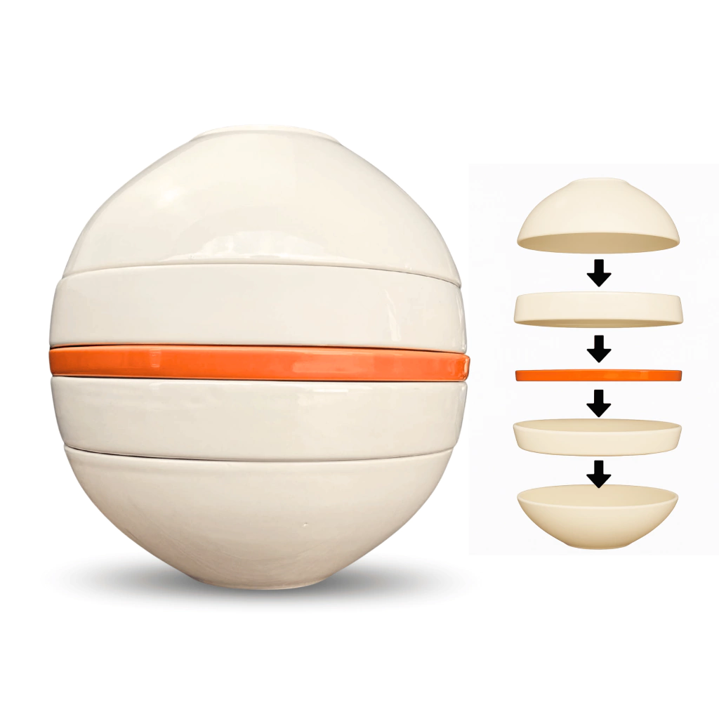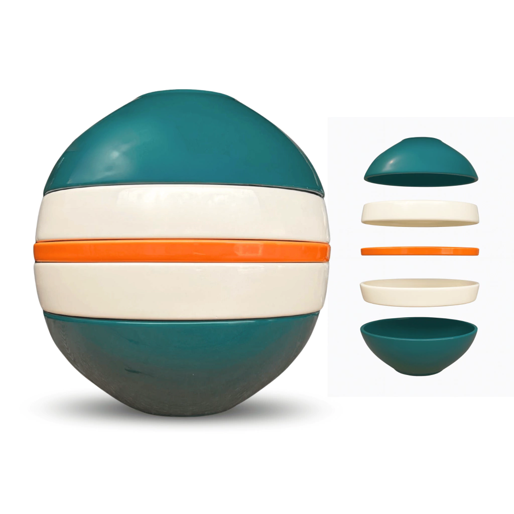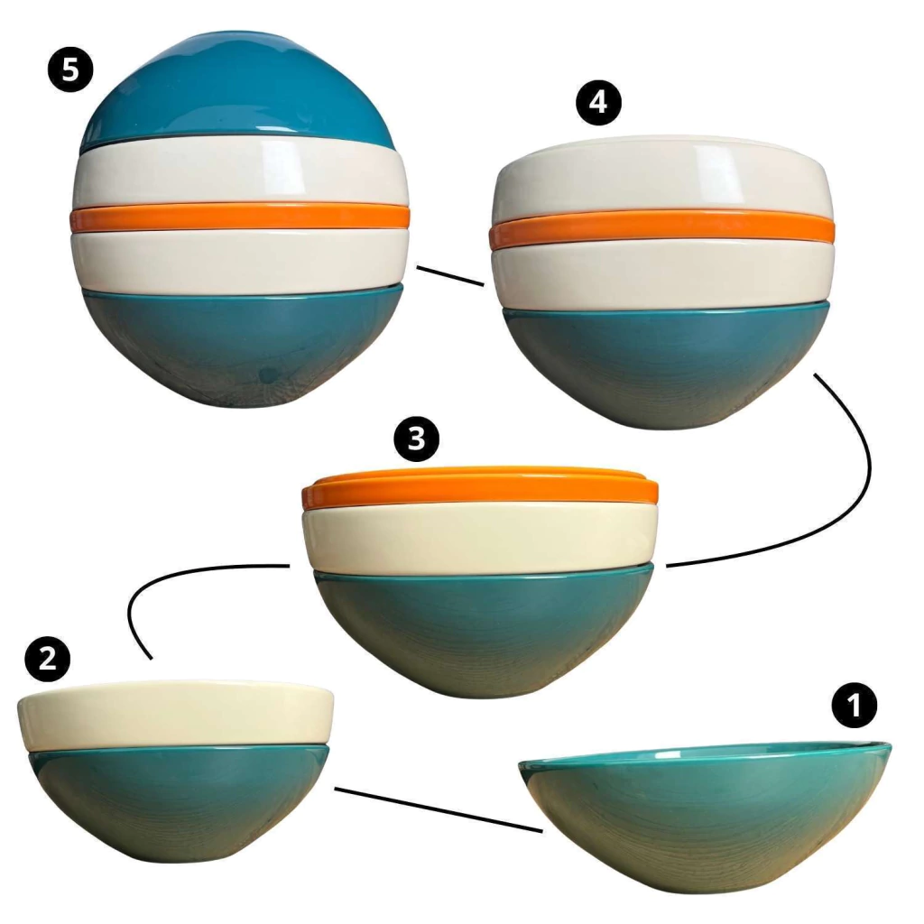 Conjunto Bola 5 Peças de Montar — composto por tigelas coloridas que se encaixam formando uma charmosa esfera decorativa. Une praticidade e design moderno, ideal para servir e organizar à mesa com estilo. Uma peça funcional e decorativa que encanta em qualquer ambiente.