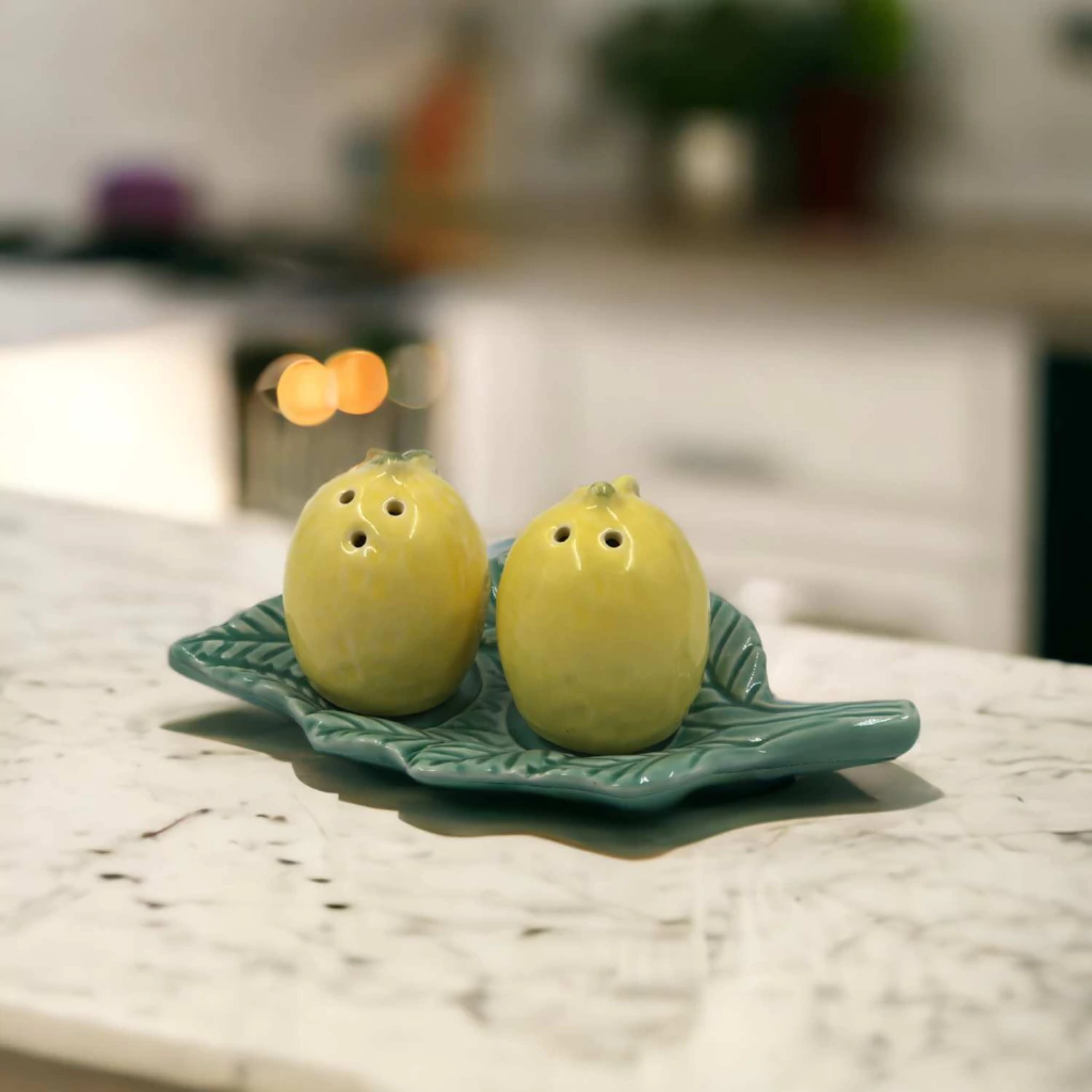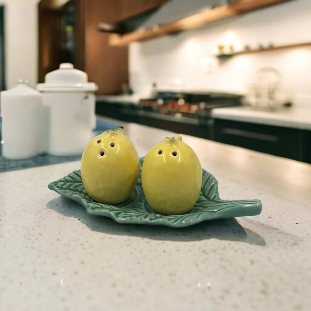 CONJUNTO SALEIRO E PIMENTEIRO COM BANDEIJA POSITANO SCALLA