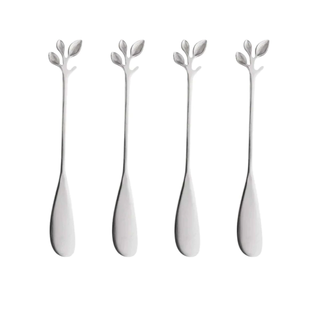 CONJUNTO 4 ESPÁTULAS AÇO INOX LEAVES PRATEADO WOLFF