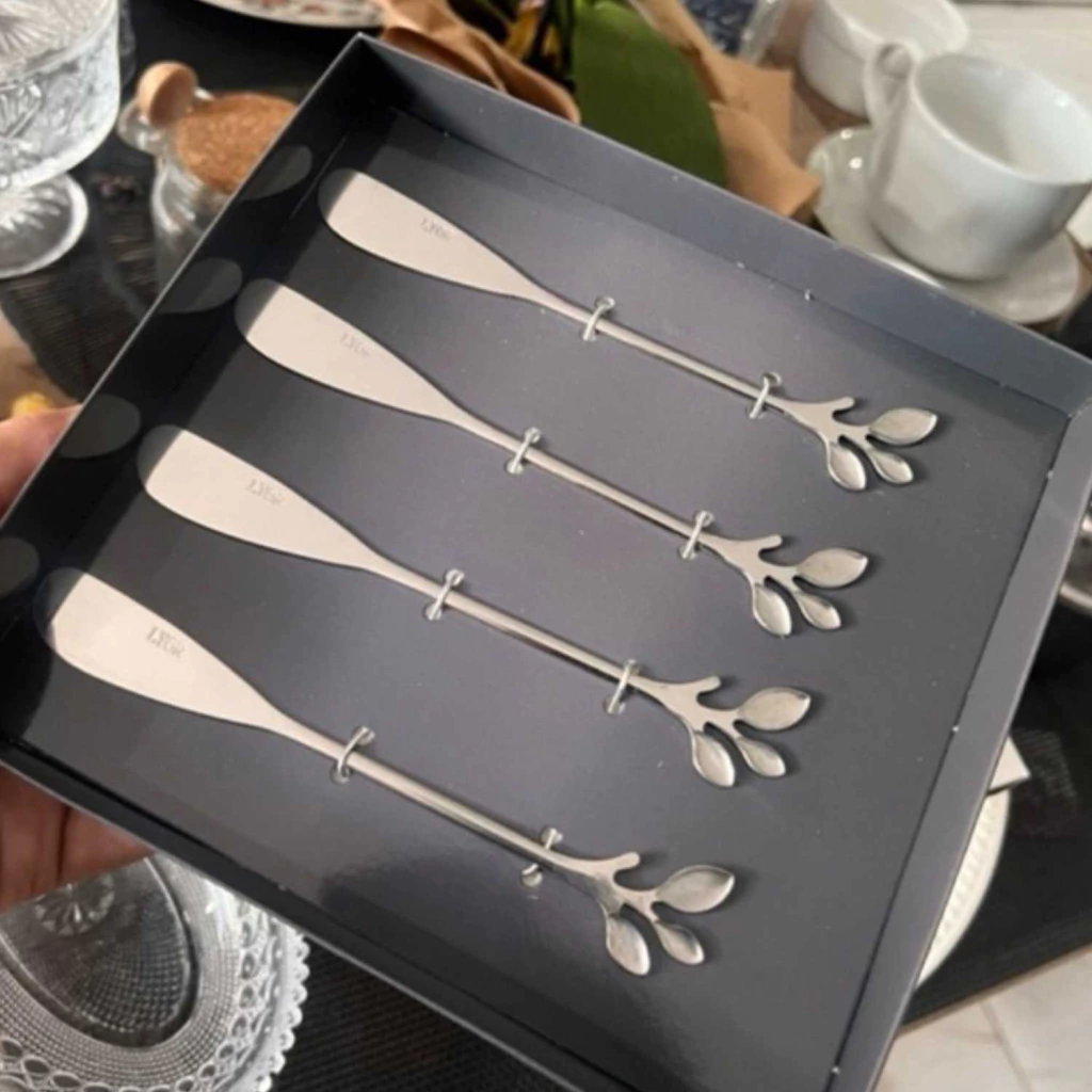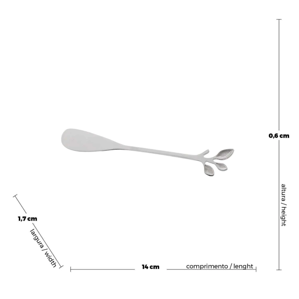 Cada peça traz detalhes delicados inspirados em folhas, adicionando um toque de sofisticação e natureza à mesa. As espátulas são projetadas para oferecer conforto no manuseio, com design que facilita o corte e a aplicação de alimentos.