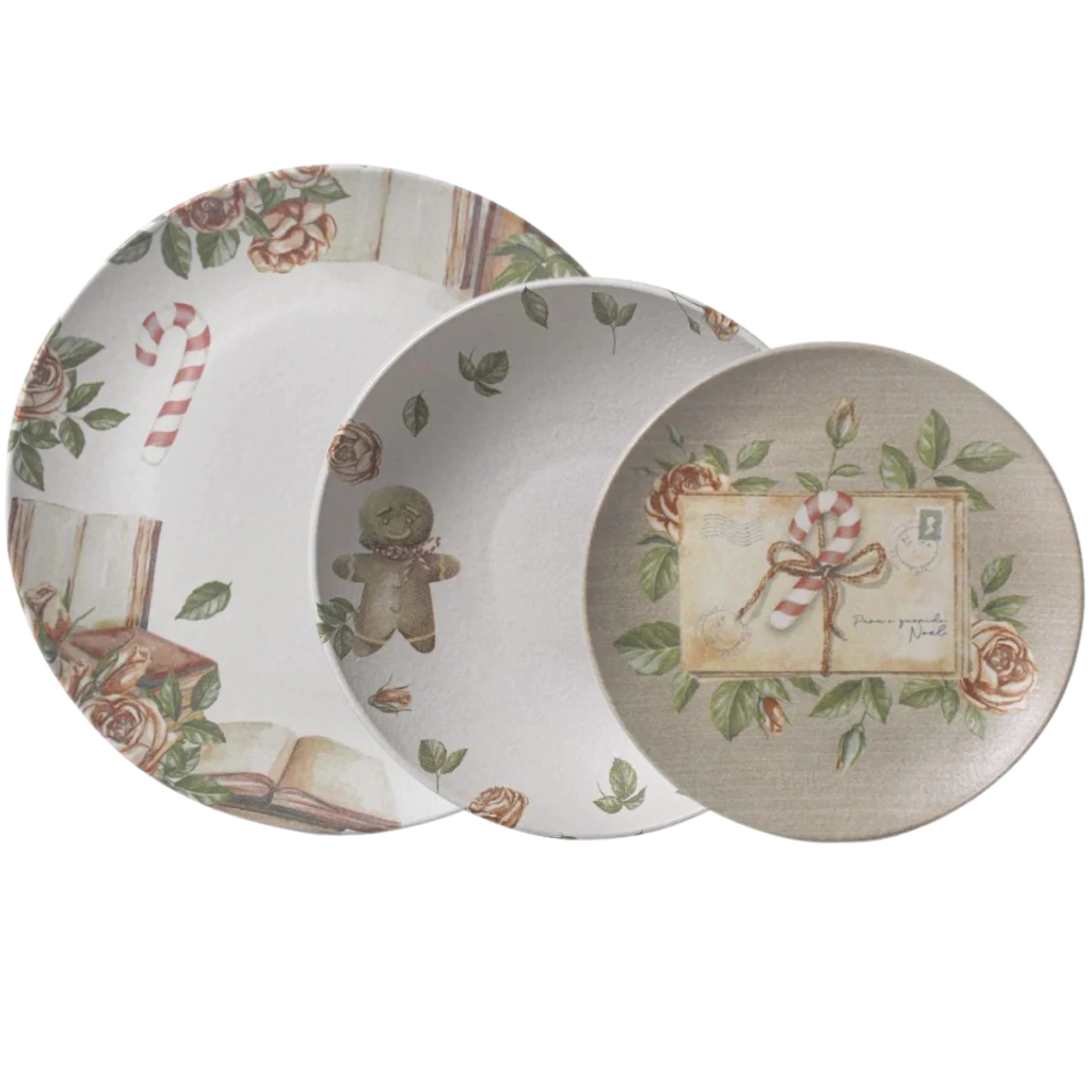 JOGO DE PRATOS 18 PÇS COUP STONEWARE POSTAIS DE NATAL (6 RASOS/6 FUNDOS/6 SOBREMESA)