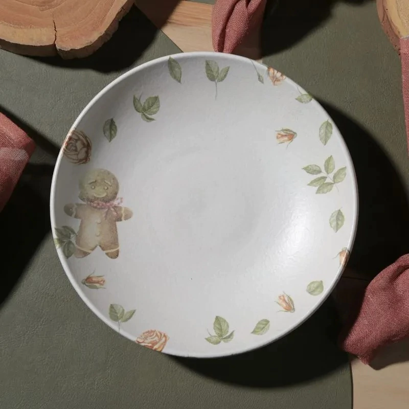 Com estampa charmosa inspirada em postais natalinos, estes pratos unem tradição e delicadeza em cada detalhe. Suas ilustrações temáticas criam uma mesa festiva e acolhedora.