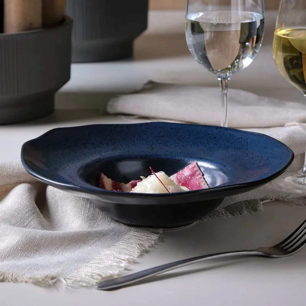 Com seu tamanho e forma, o prato é especialmente adequado para servir massas, mas também é versátil o suficiente para pratos principais como risotos, saladas e até mesmo alguns tipos de pratos assados.