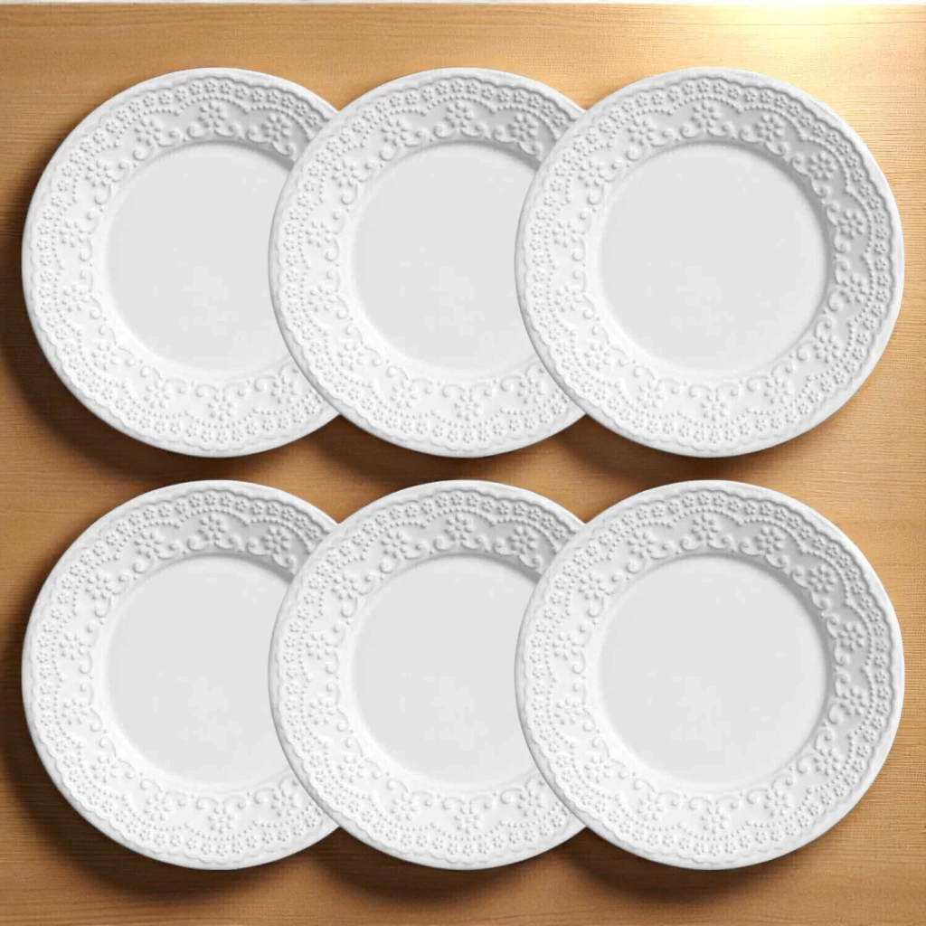 EFEITO CELADON: é uma característica natural da cerâmica causada pela fusão dos esmaltes em altas temperaturas. Em peças coloridas, gera variações de transparência e cor; nas brancas, cria contrastes entre branco e off-white, portanto é natural que em peças brancas tenham contrastes escuros nos relevos.