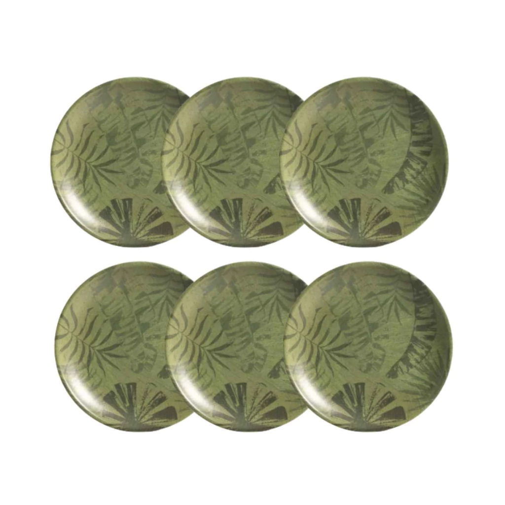 KIT 6 PRATOS SOBREMESA COUP PALM TREE OLIVE 1ª CLASSIFICAÇÃO ALLEANZA