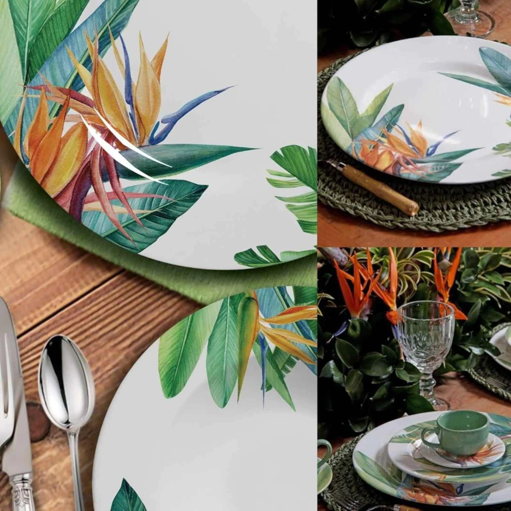 Com design inspirado na flor estrelítzia, símbolo de exotismo e beleza tropical, este prato de sobremesa traz cor e elegância na medida certa. Ideal para servir doces e pequenas porções com charme, ele valoriza mesas criativas e vibrantes, sem perder a sofisticação.